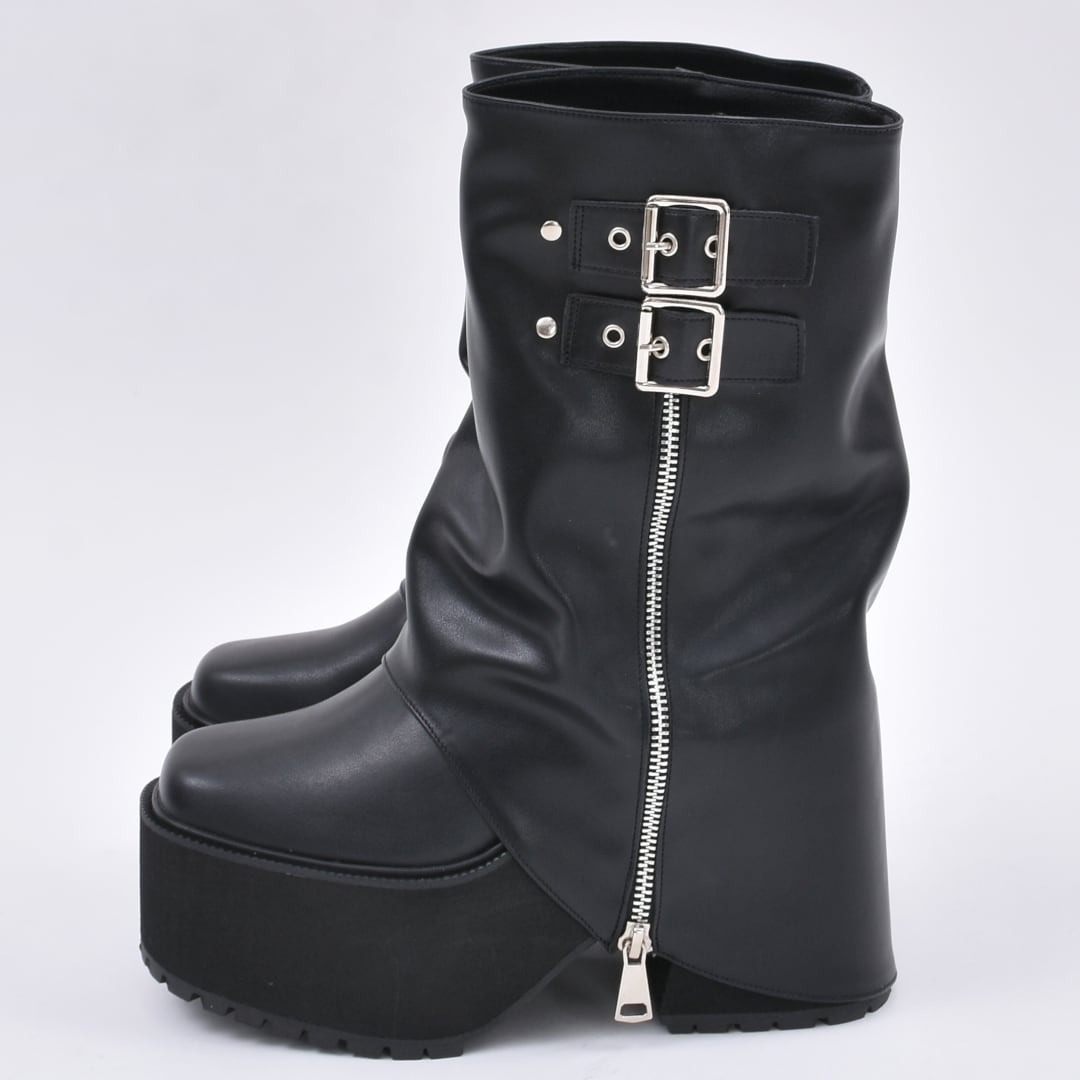ボリュームある厚底ブーツで好バランスに仕上げ。