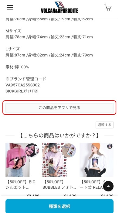 💡ブラウザ(公式ONLINE STORE)の各商品ページ下部にある「この商品をアプリで見る」ボタンをクリックすると、アプリ画面に切り替わります。そのままアプリ上で決済画面まで進んで頂くと、クーポンがご利用頂けます。