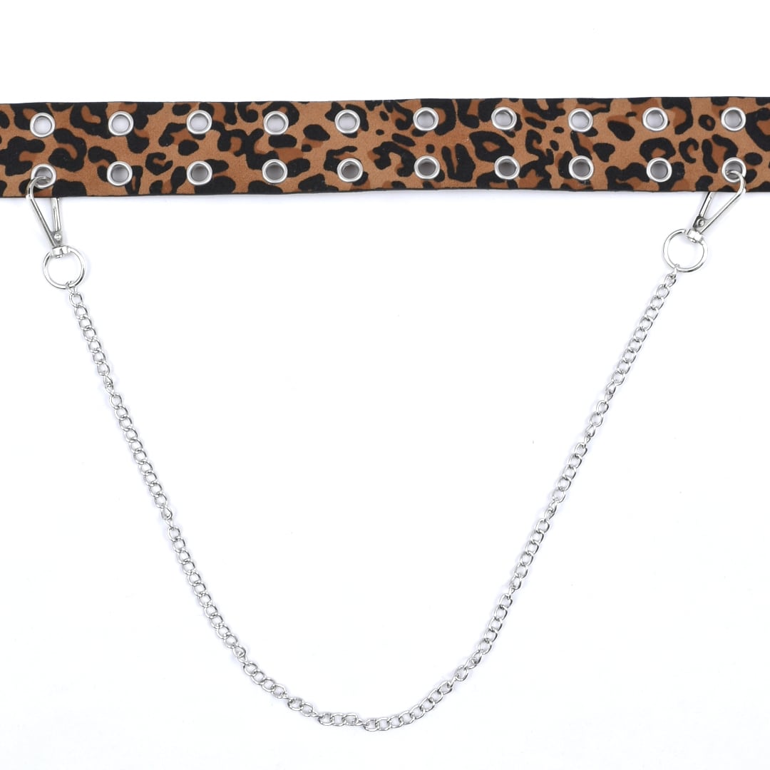 チェーン付き 2ハトメベルト(ヒョウ柄)