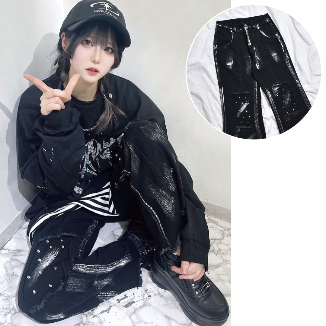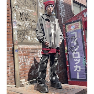 随所に施されたペイント風の加工やダメージがインパクトあるデザイン