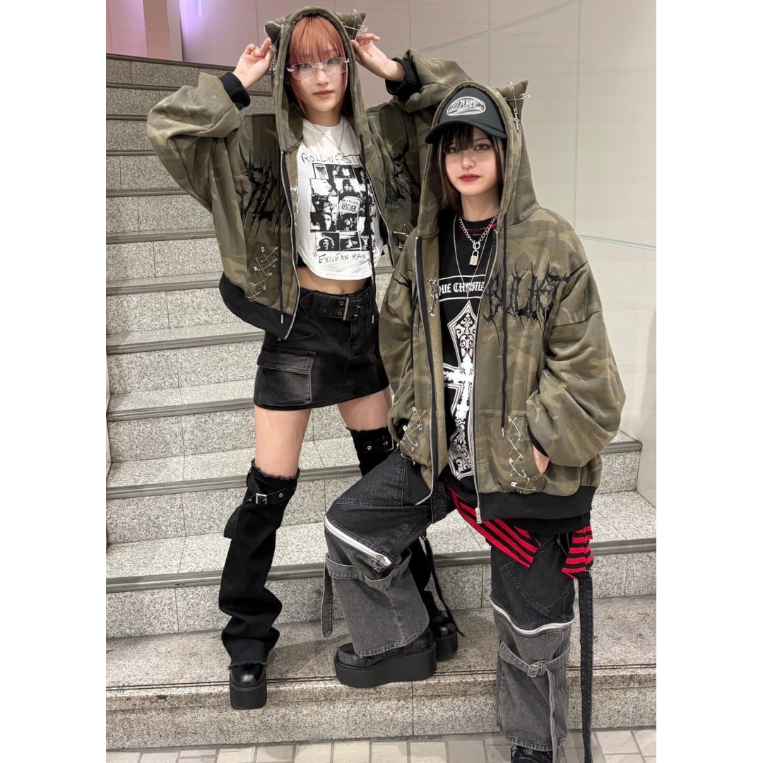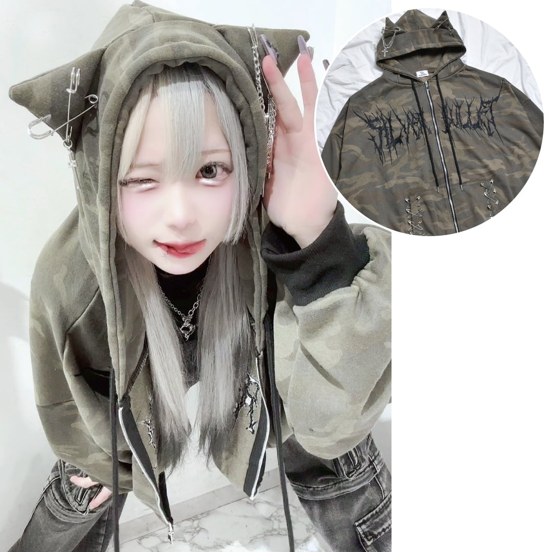 【渋谷店で人気!】新作★ネコ耳カモフラZIPパーカー