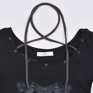 レイヤード風のデザイン、チョーカー風にアレンジできるストリング(紐)がアクセントになったピタT