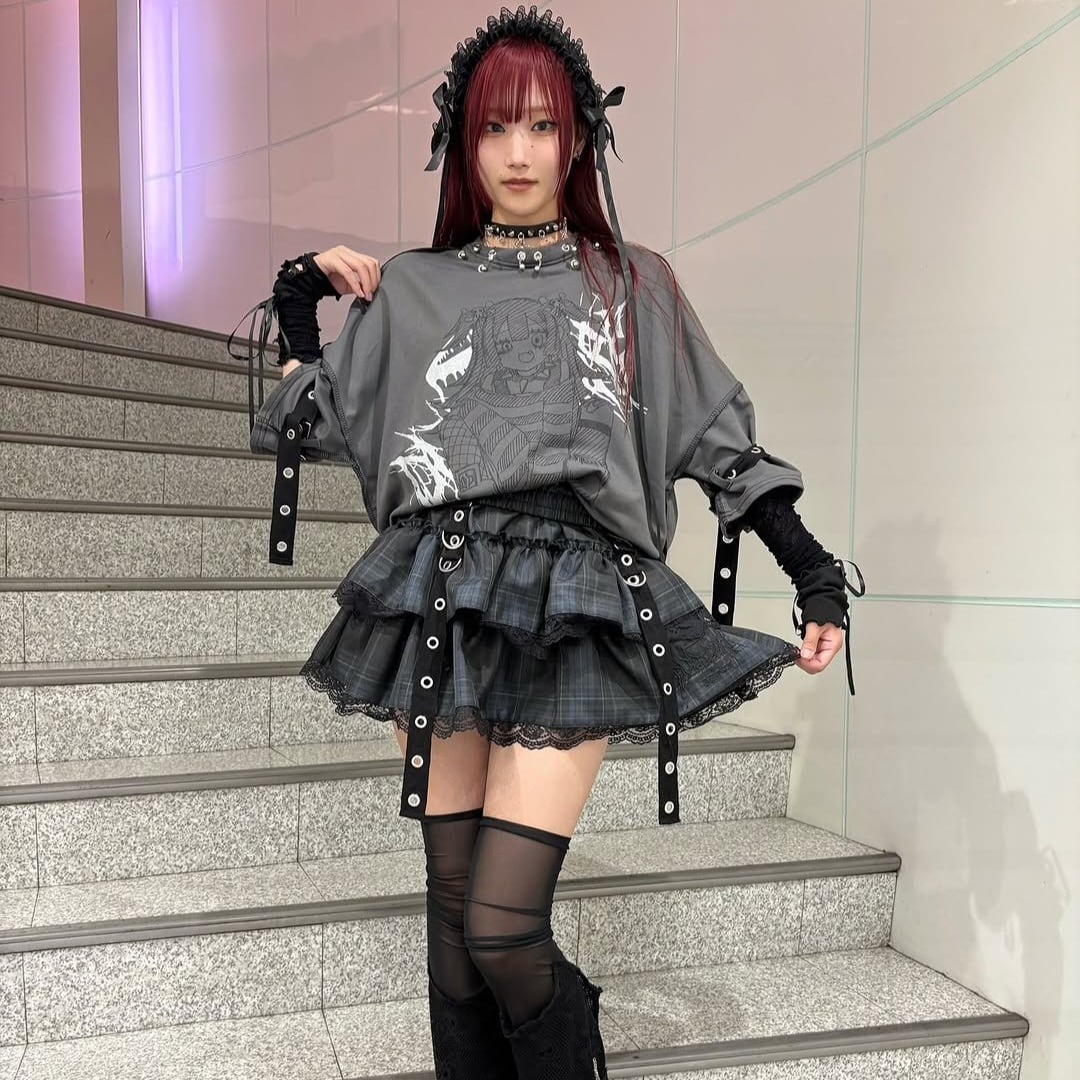 首元のピアス、"やみかわいい"サブカル少女のイラストや強めのロゴデザインがポイント