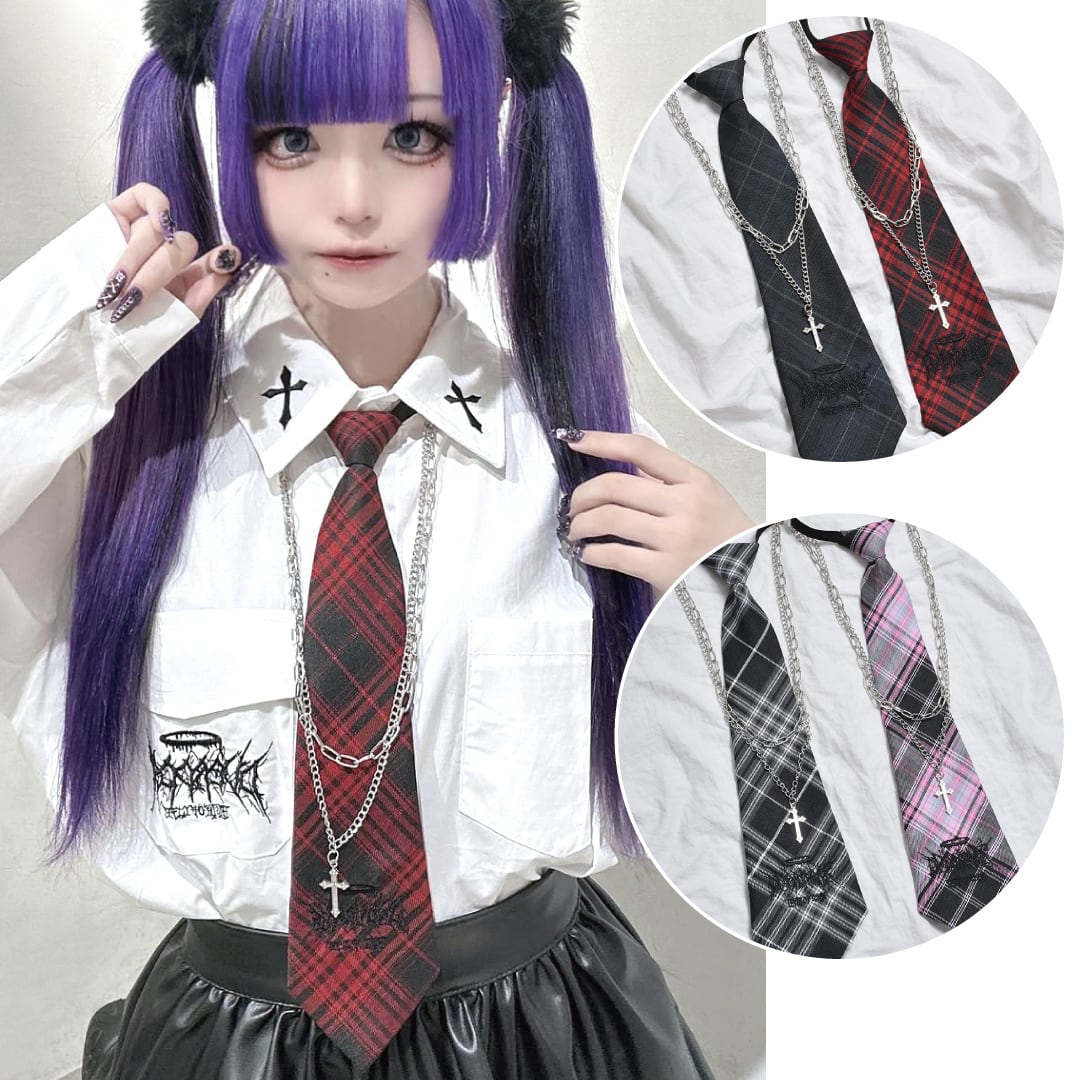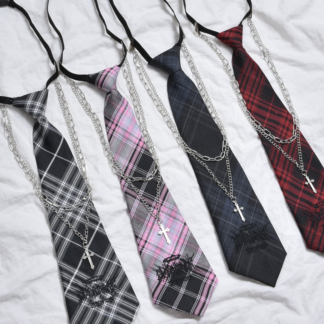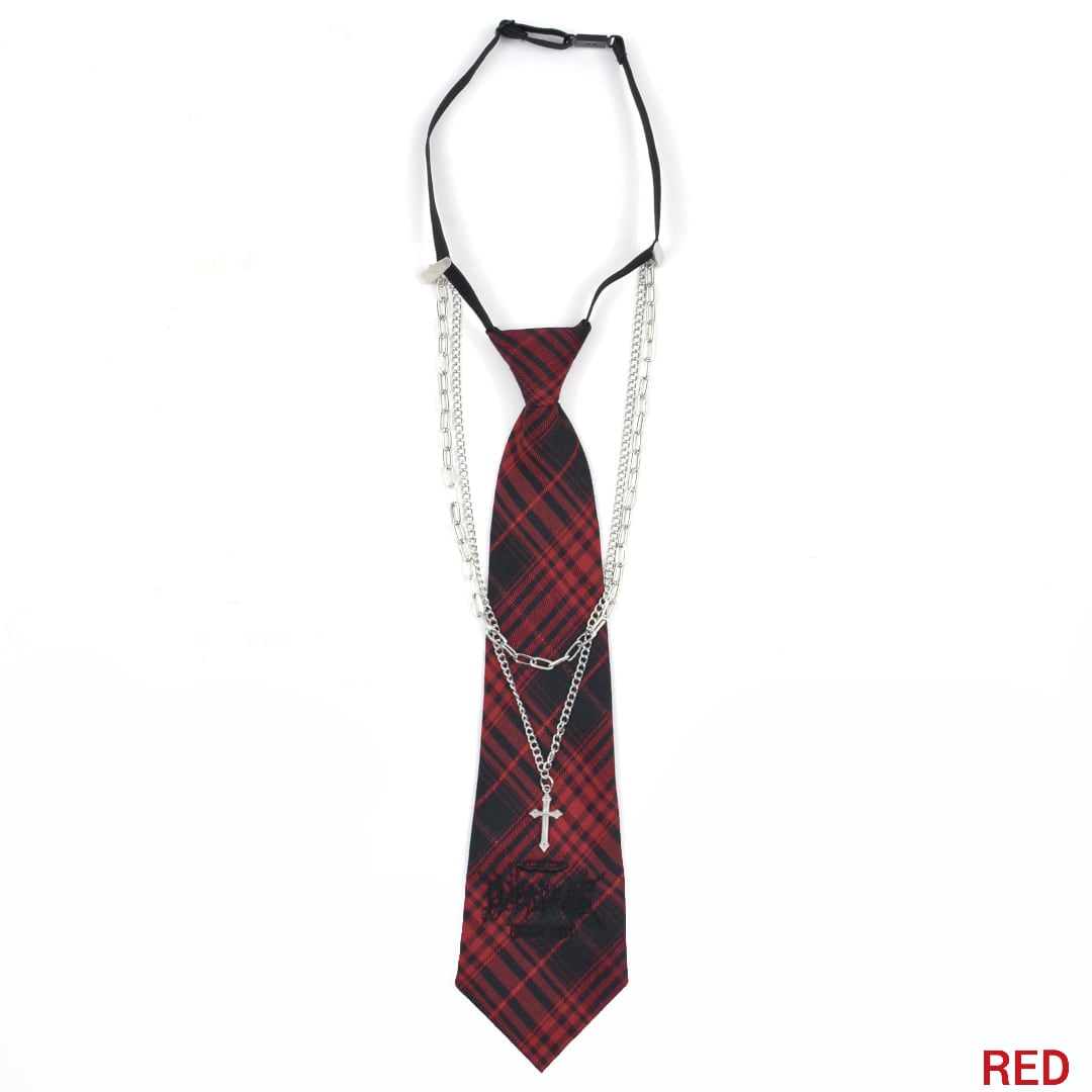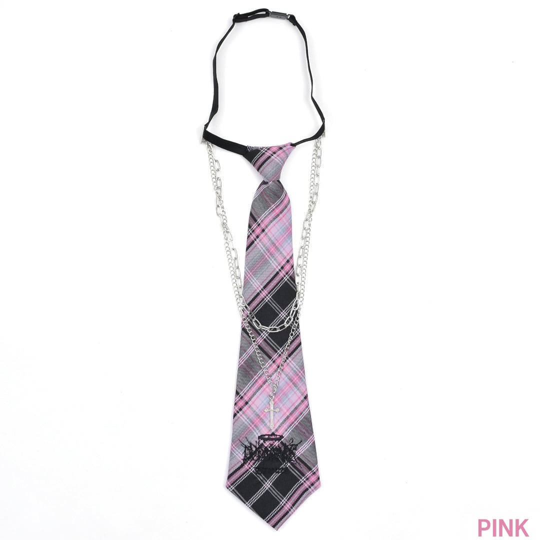 【2/18 新カラー追加!】2点セット★チェックネクタイ×ネックレスセット
