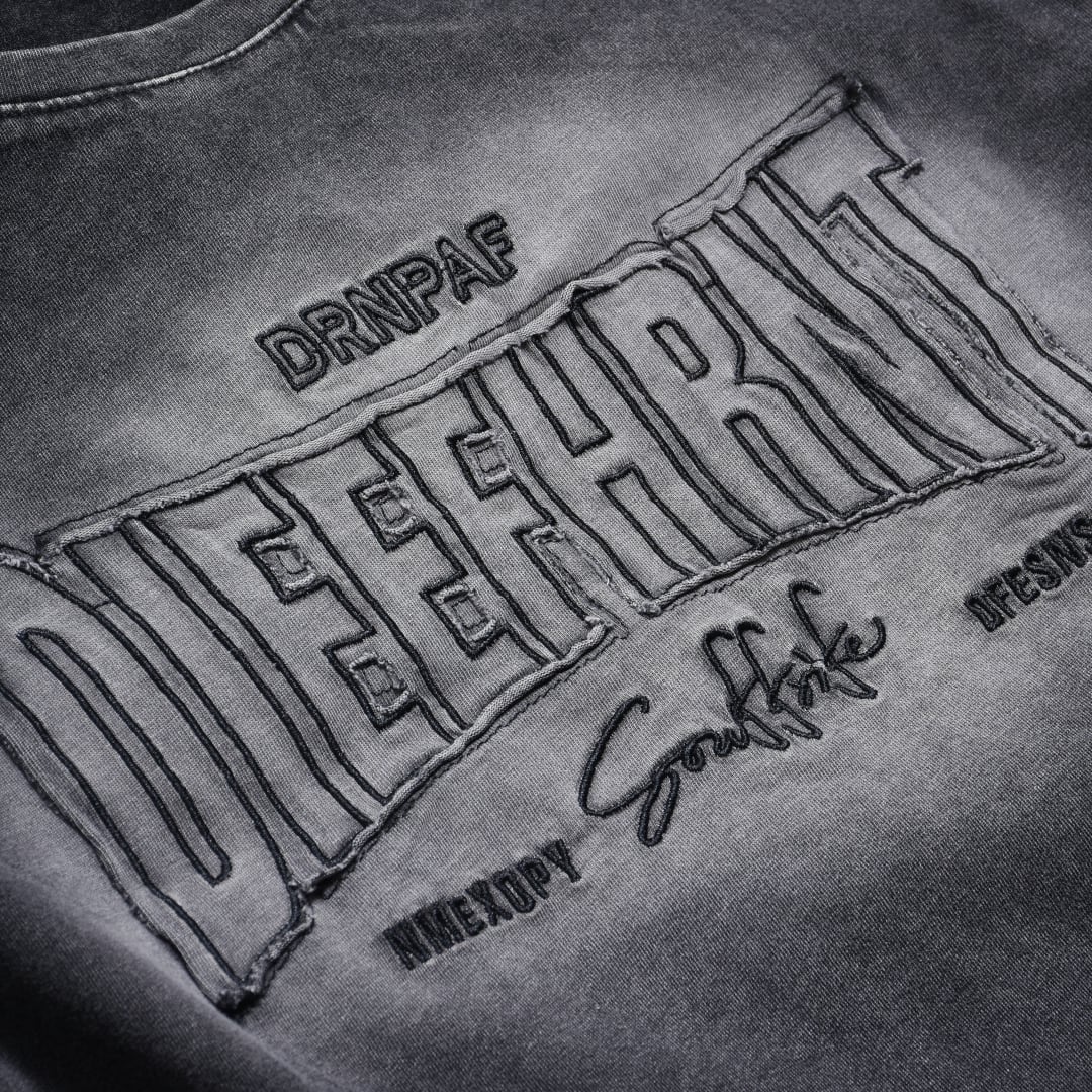 退色した生地の風合い、フロントのロゴデザインがアクセント