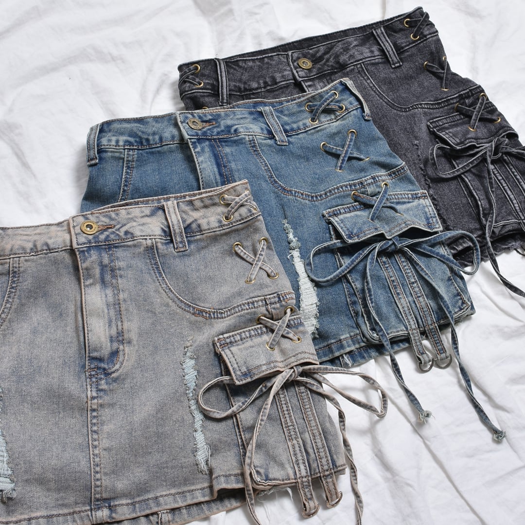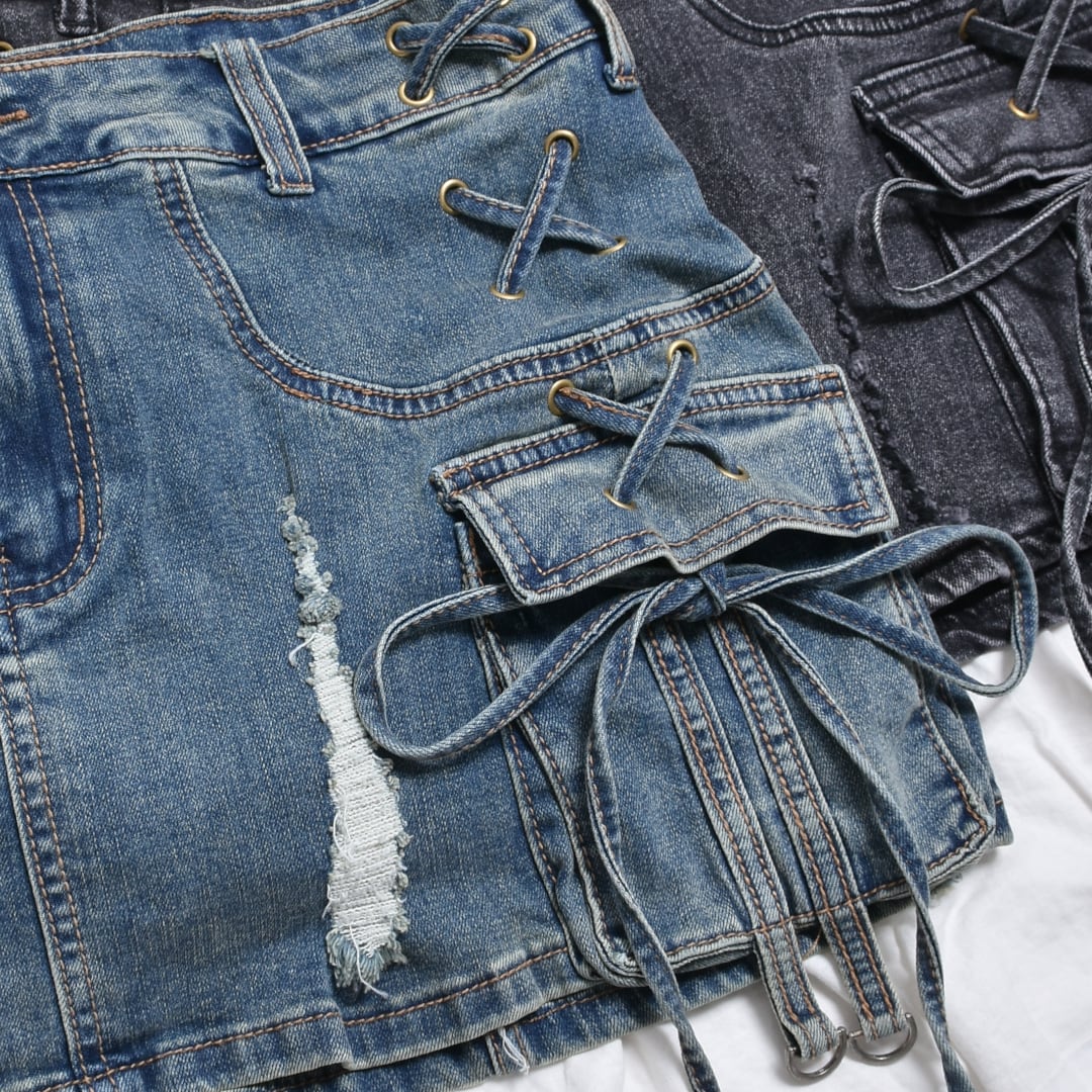 【新作】コードレースアップデニムスカート