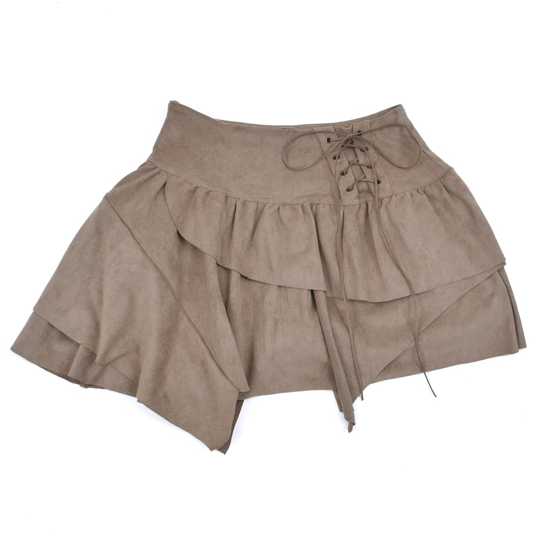 レースアップ、アシンメトリーなデザインが印象的なミニスカート