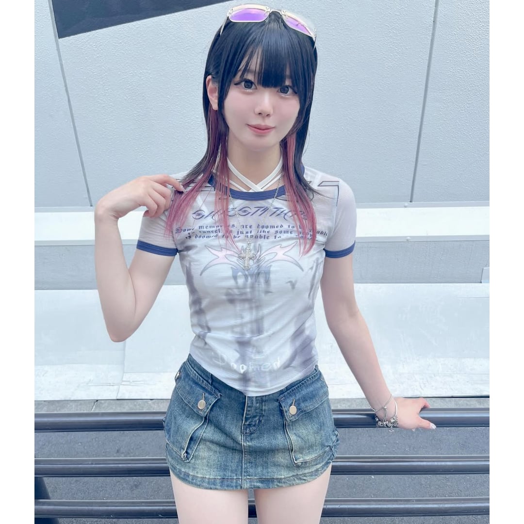 リンガーネックTシャツをシースルー素材で仕上げた珍しい一品。