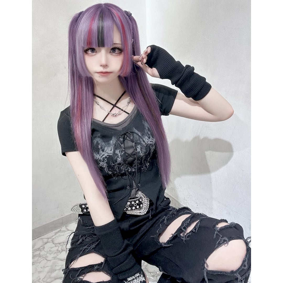 レースアップデザイン、レイヤード風デザインがアクセントになったピタT