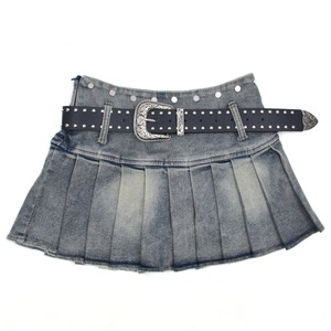 【7/16新着】2点セット★ベルト付き プリーツデニムスカート