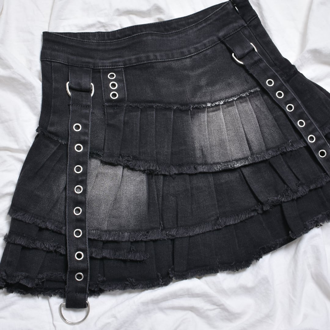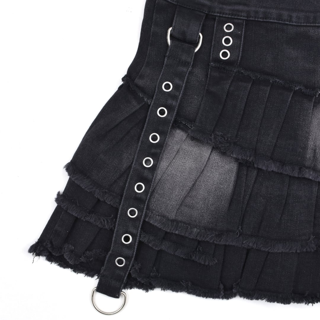 【9/10 完売BLACK再入荷!】新作★WASH ハトメティアードデニムスカート