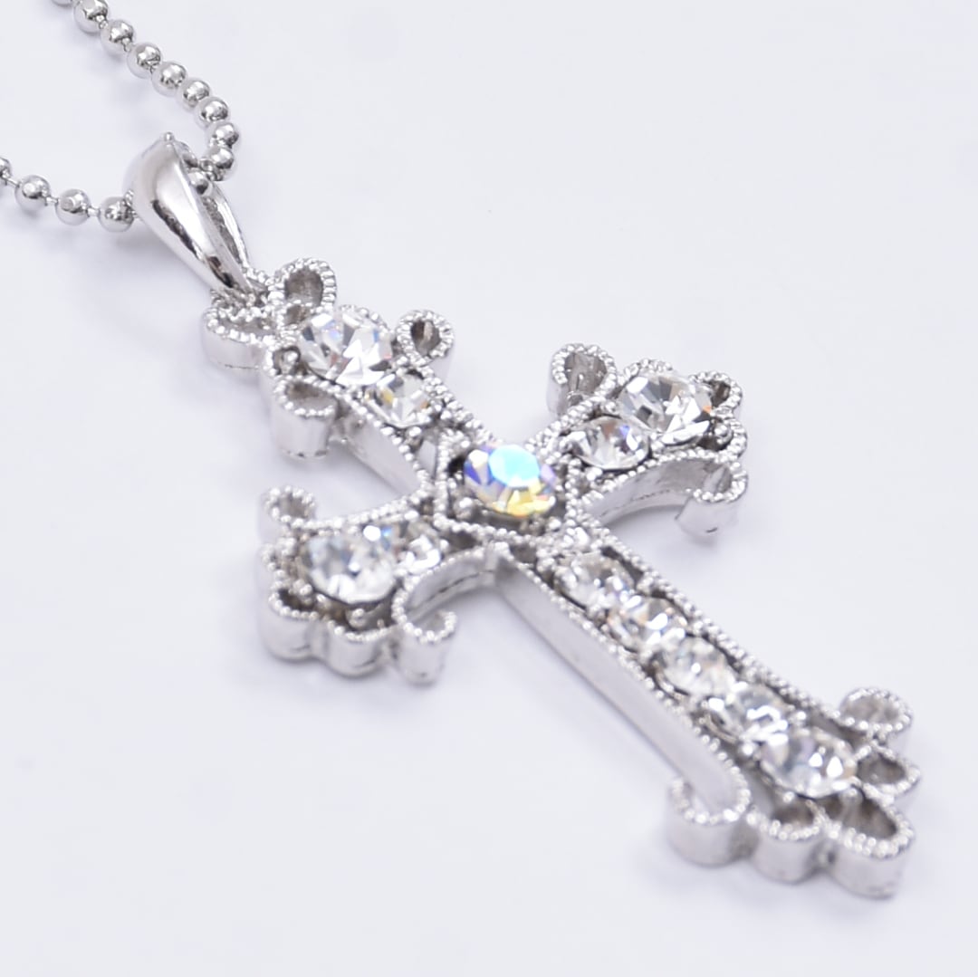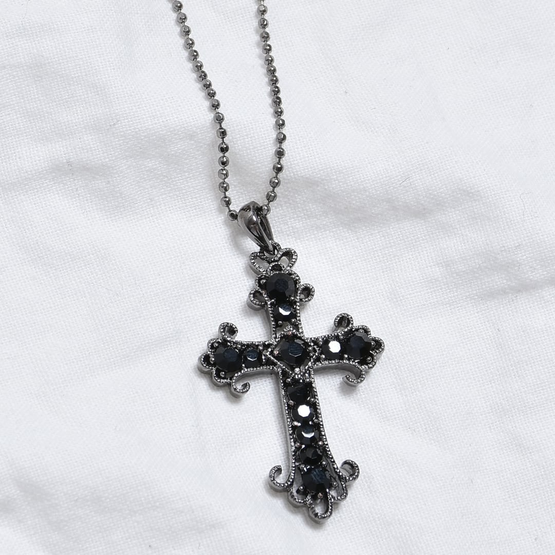 ラインストーンクロスネックレス