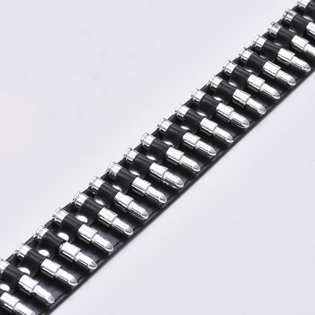 フェイクレザーとメタルのインパクトあるデザインベルト