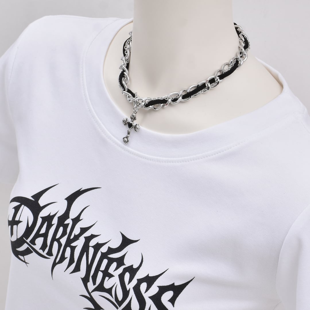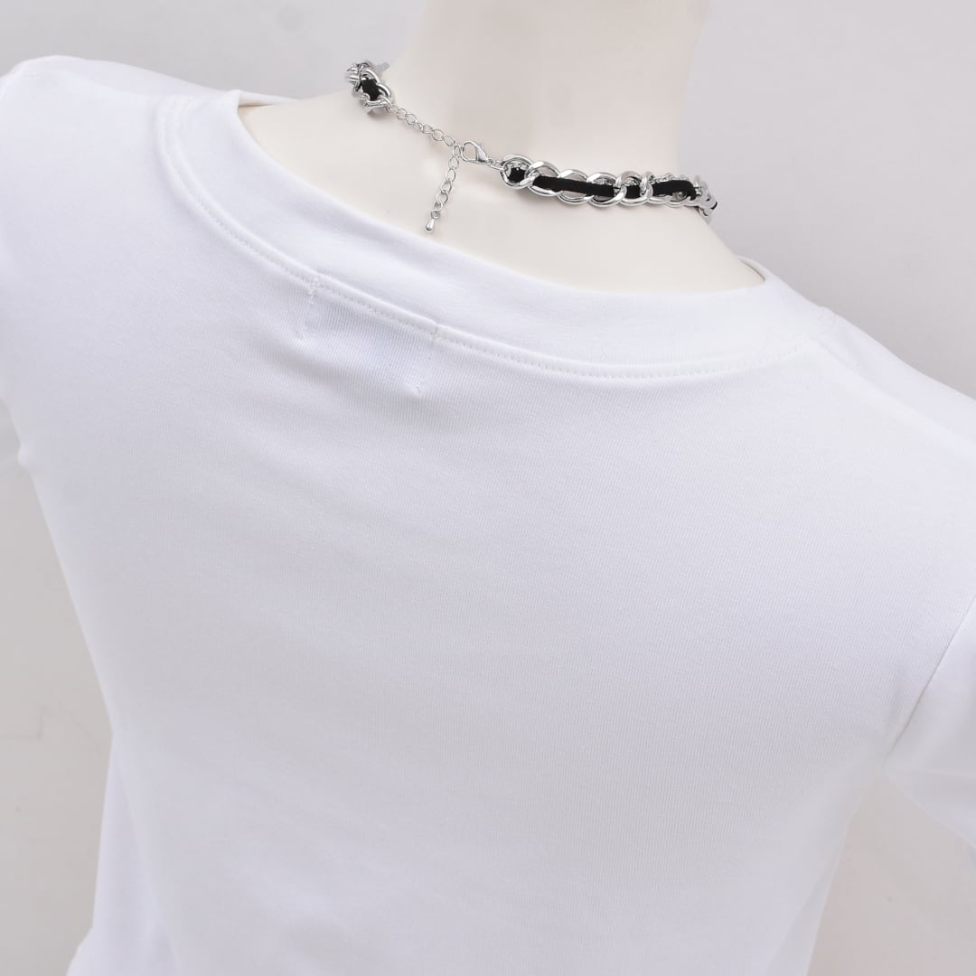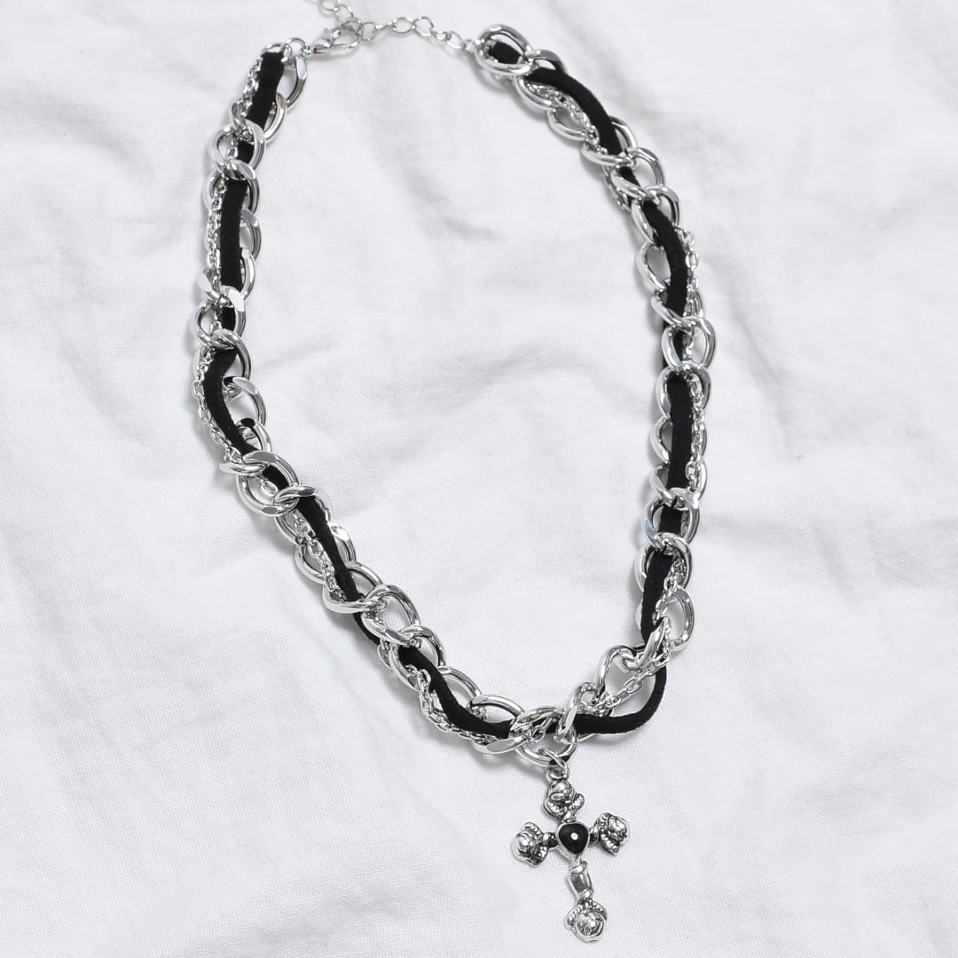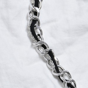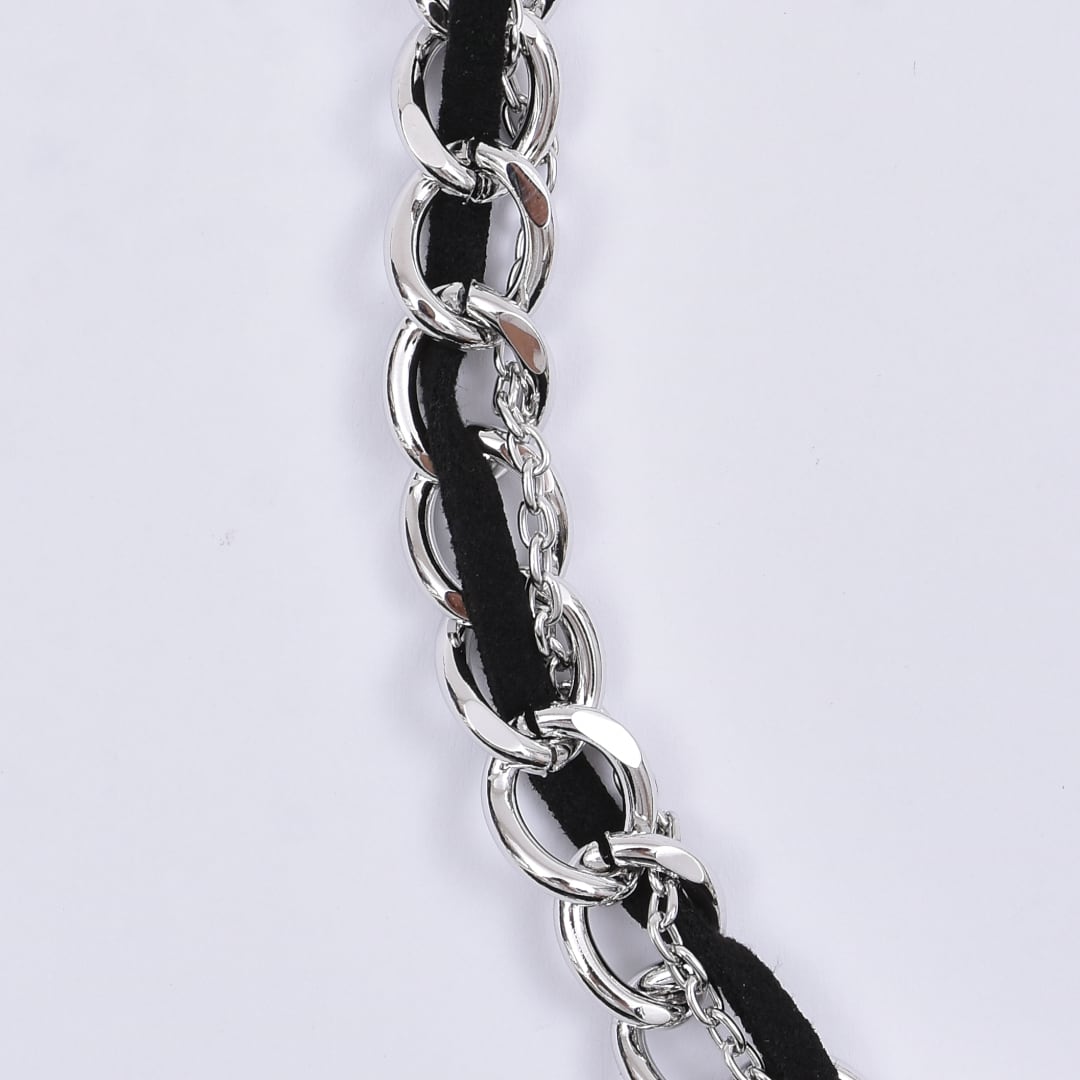 鎖型のチェーンやスェード調のスピンドルを組み合わせたパーツが印象的。