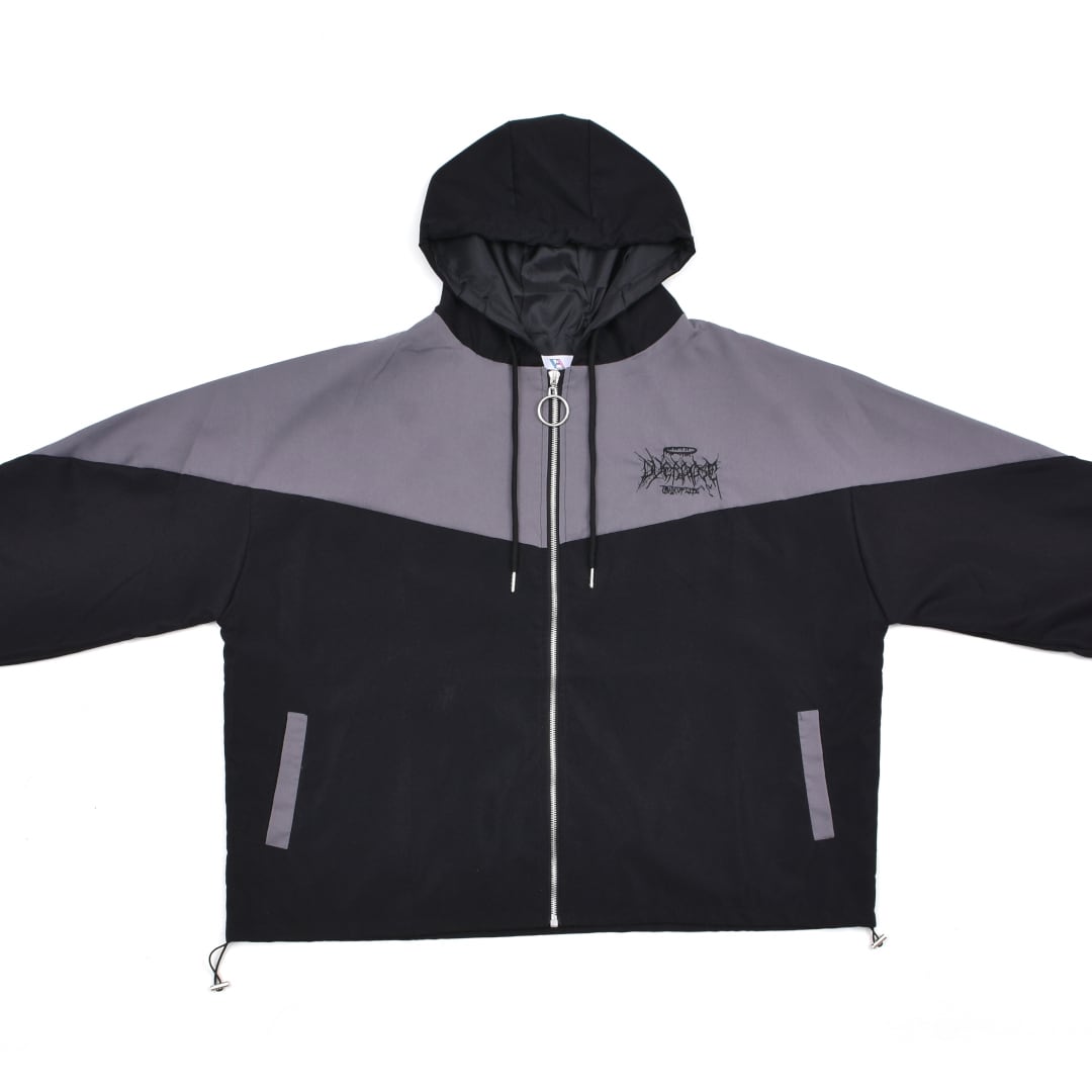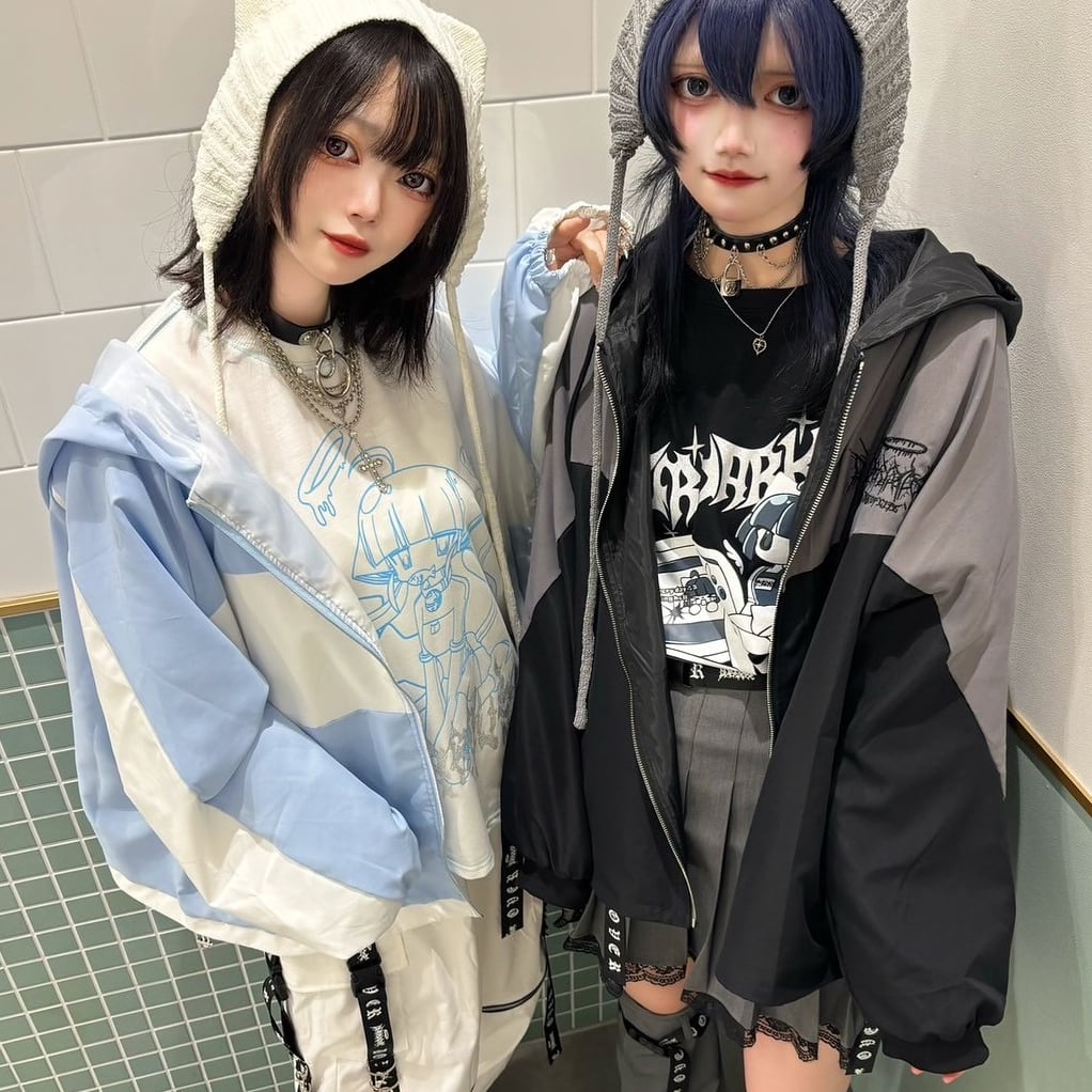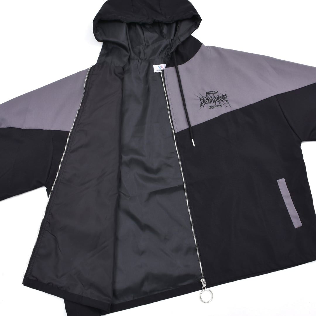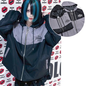 【9/2新着】サブカルロゴ★ショルダー切替フードブルゾン