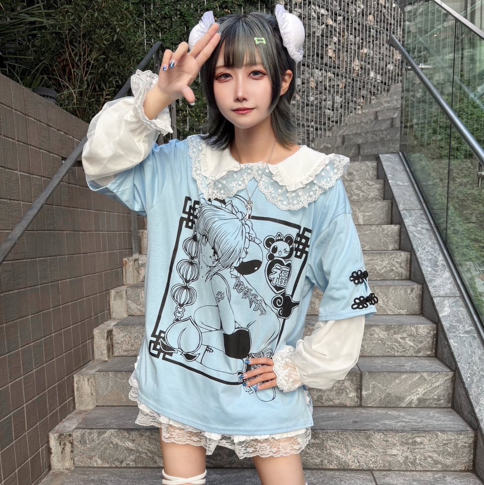 【9/3新着】サイドスリット チャイナガールTシャツ