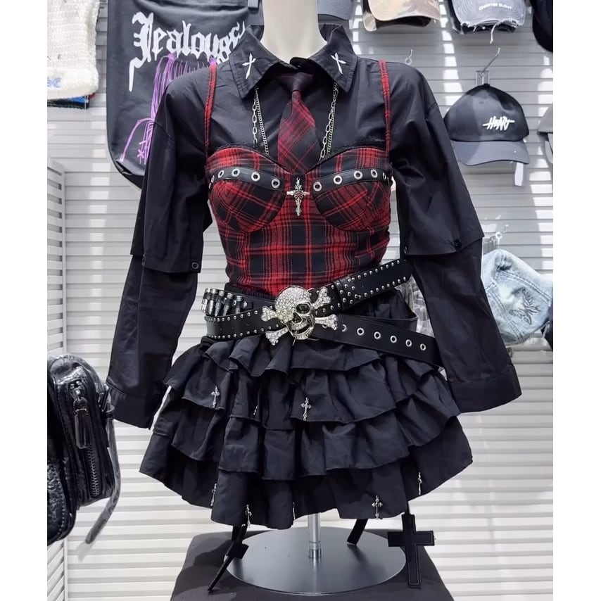 【2/4 完売→再入荷!】Many Cross ブラックティアードスカート