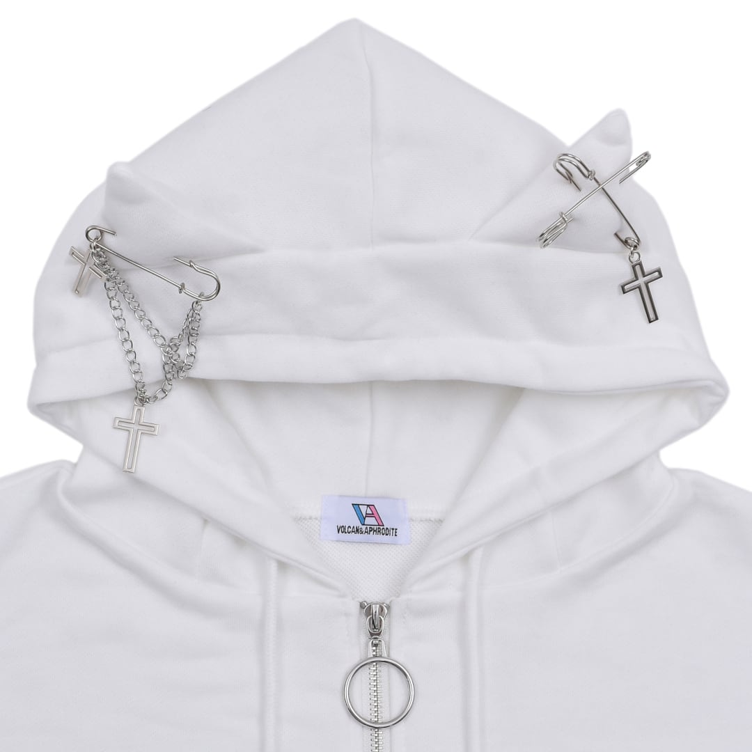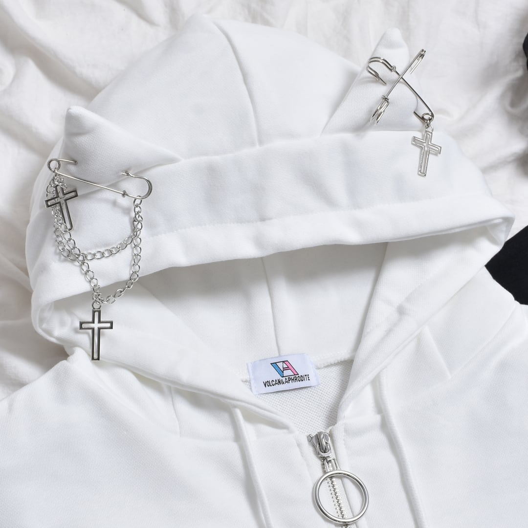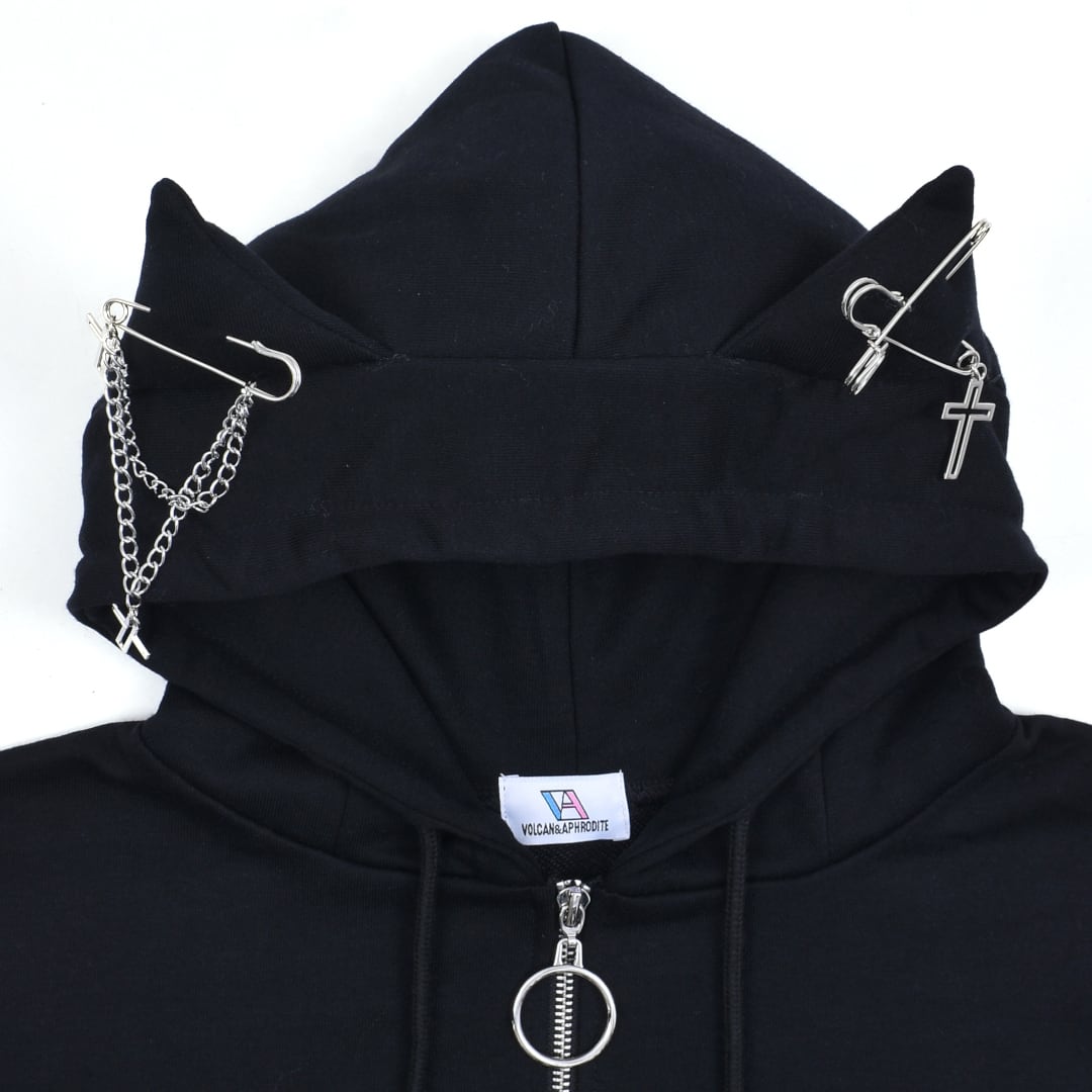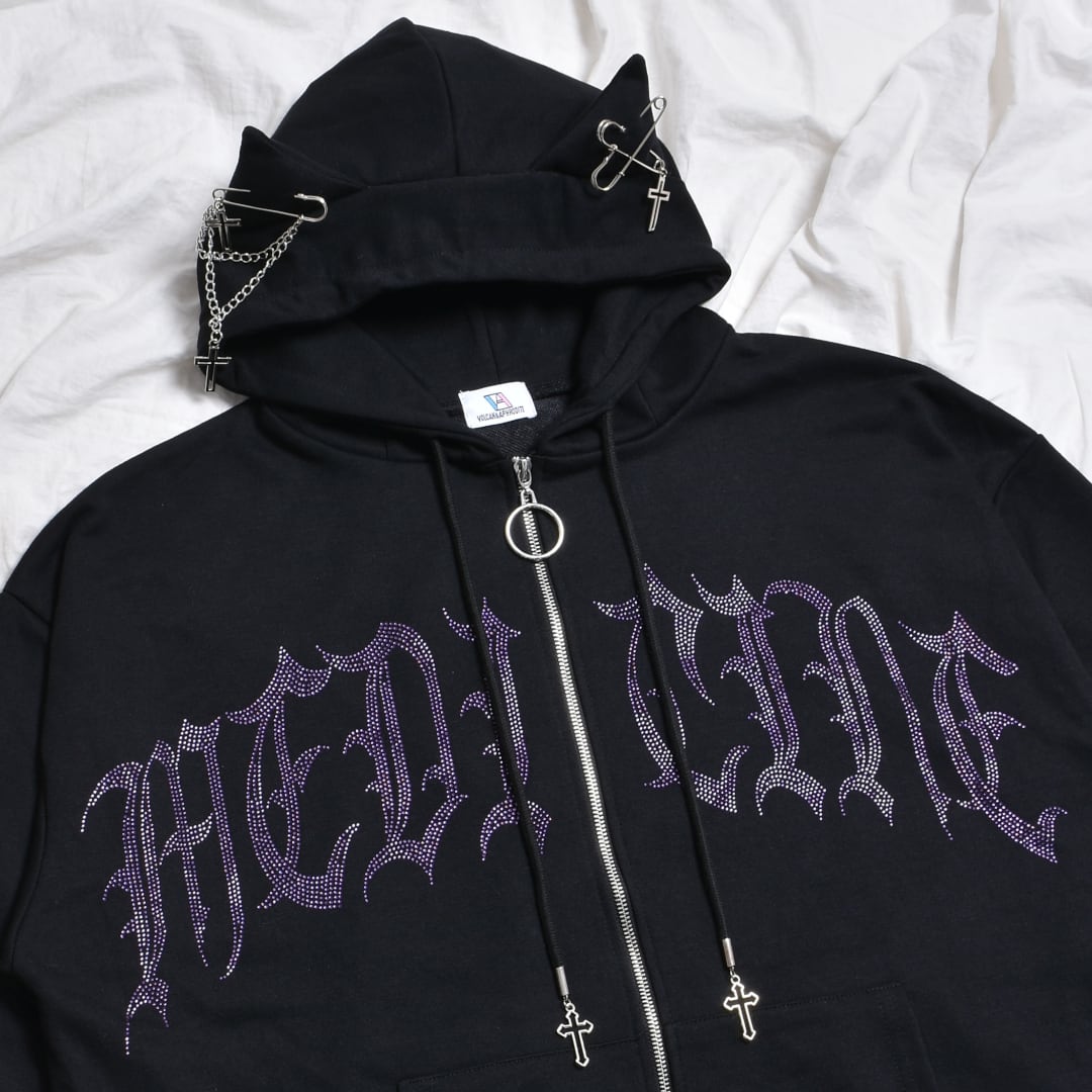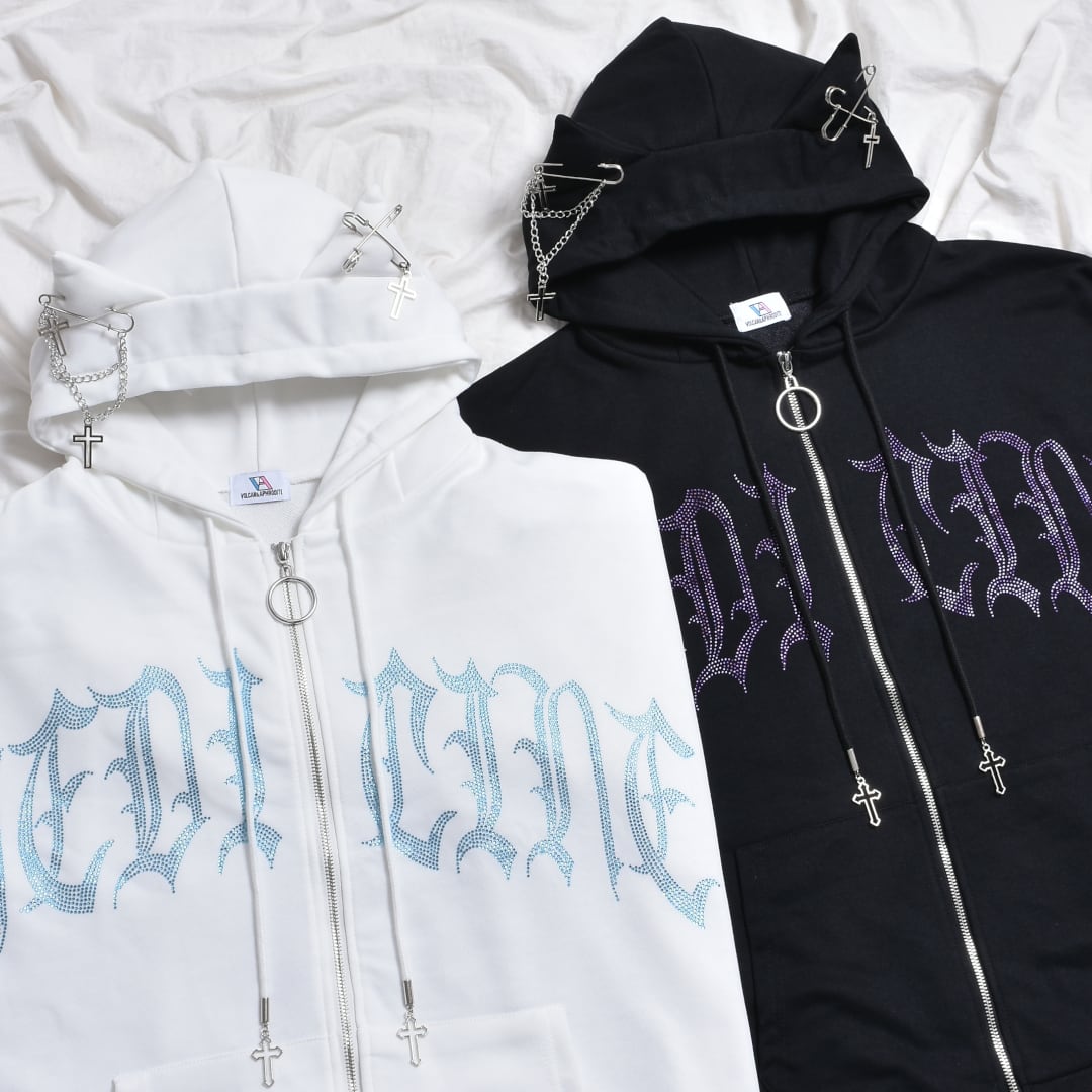 【9/5新着】ネコ耳ラインストーンZIPパーカー