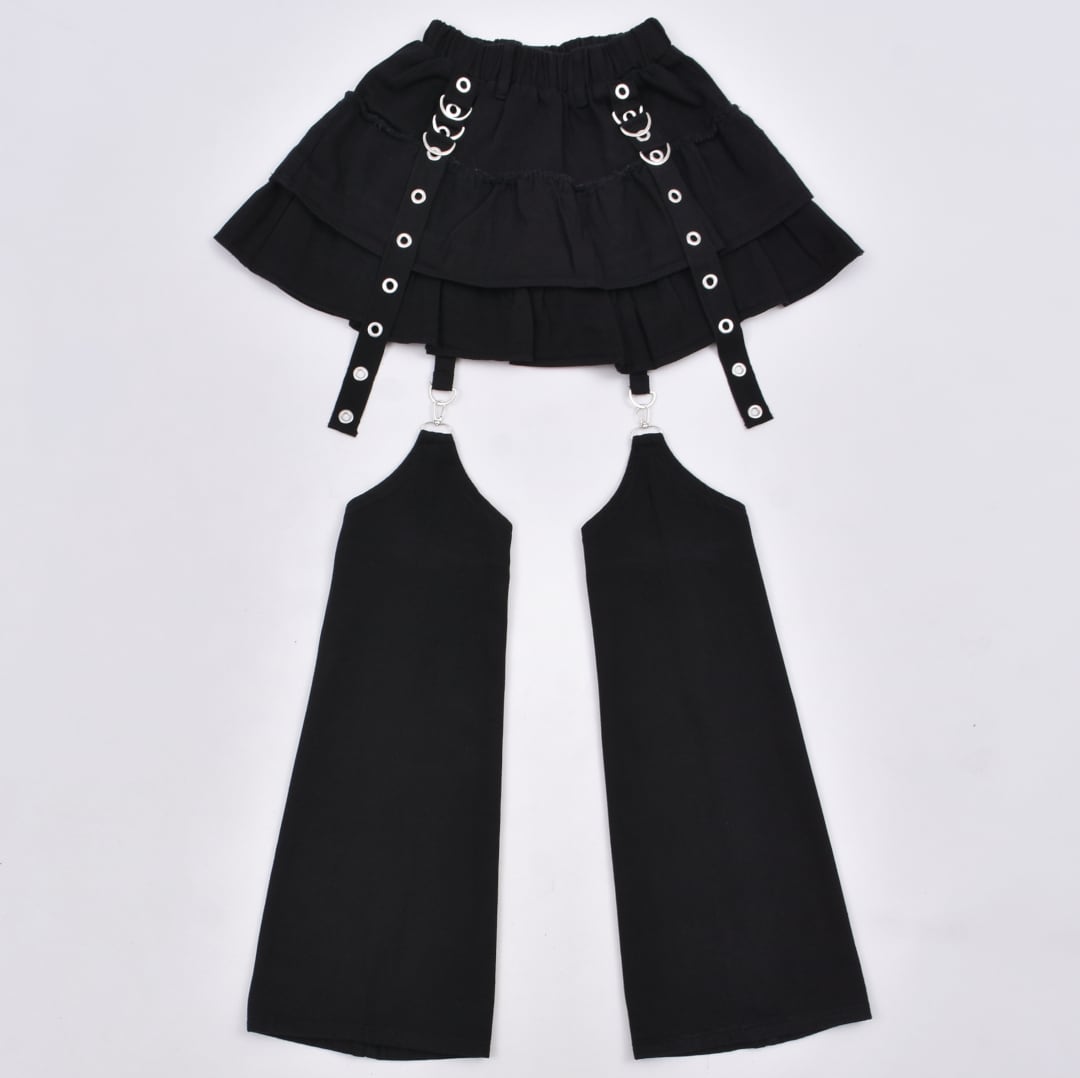 パンツのような着こなしは勿論、金具を取り外せばスカートとしても活躍してくれます。