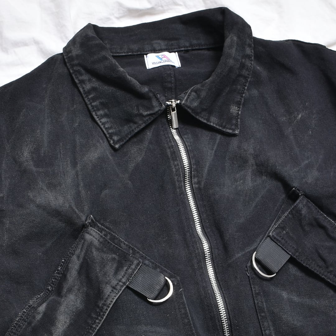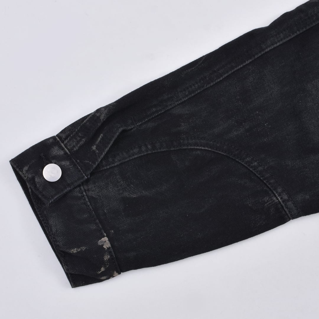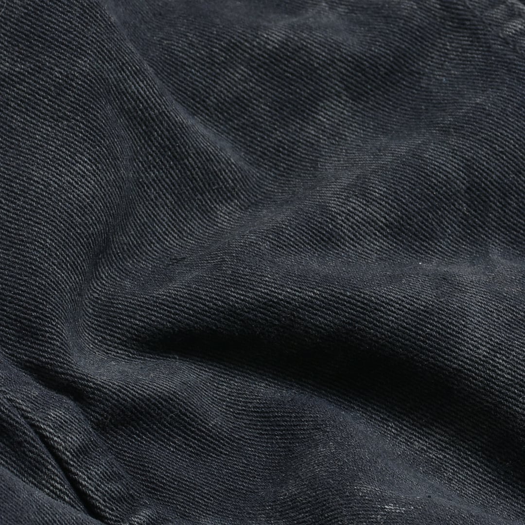 強めの汚れ加工と色落ちを表現したブラックデニムが雰囲気抜群。