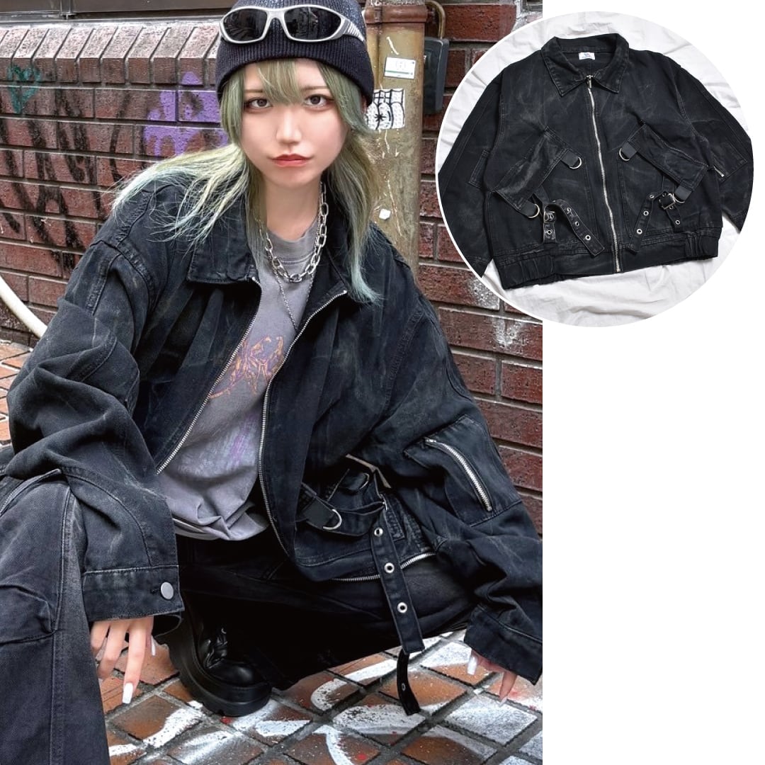 【火曜17時まで▶934円OFF!】ブラックベルト★WASHデニムジャケット