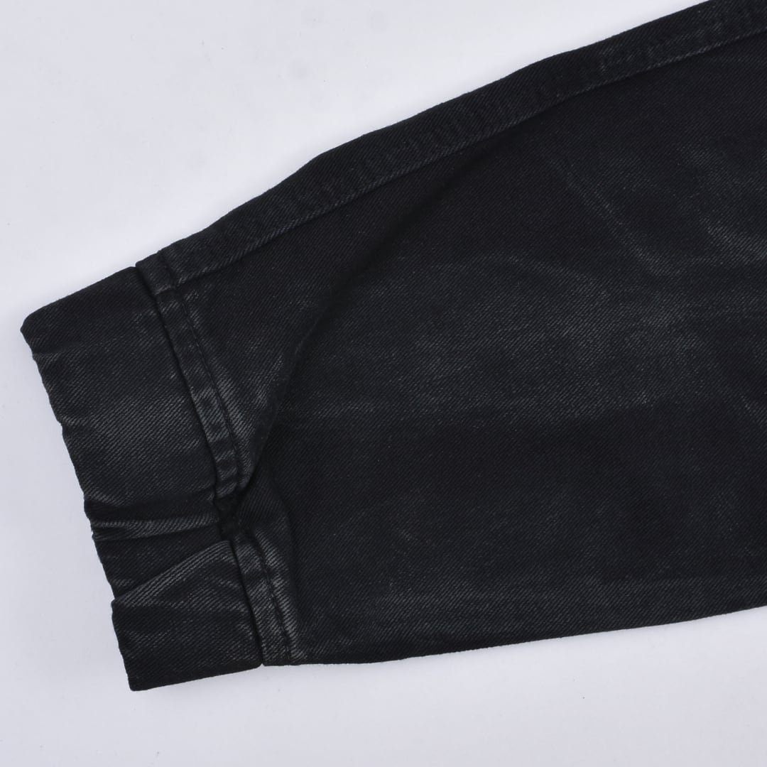 強めの汚れ加工と色落ちを表現したブラックデニムが雰囲気抜群。