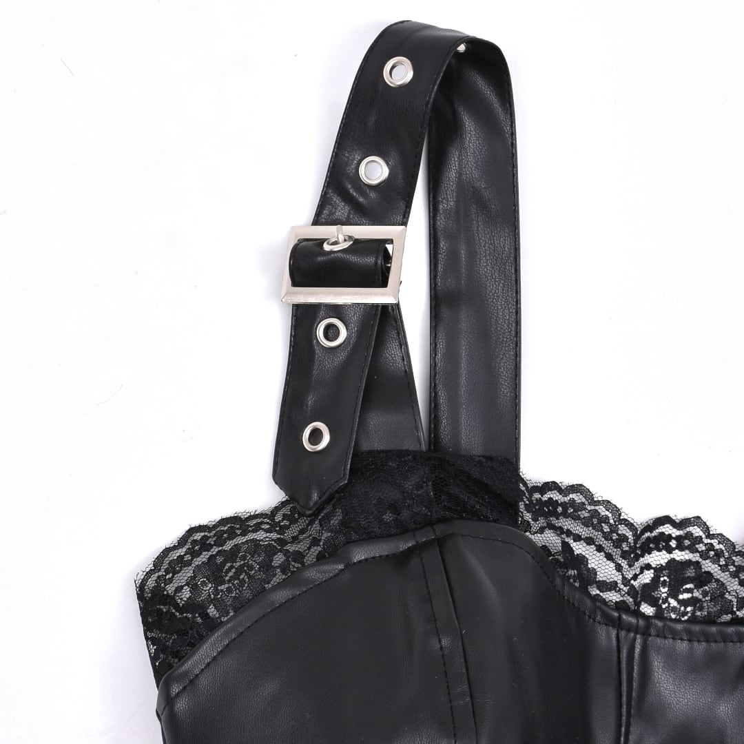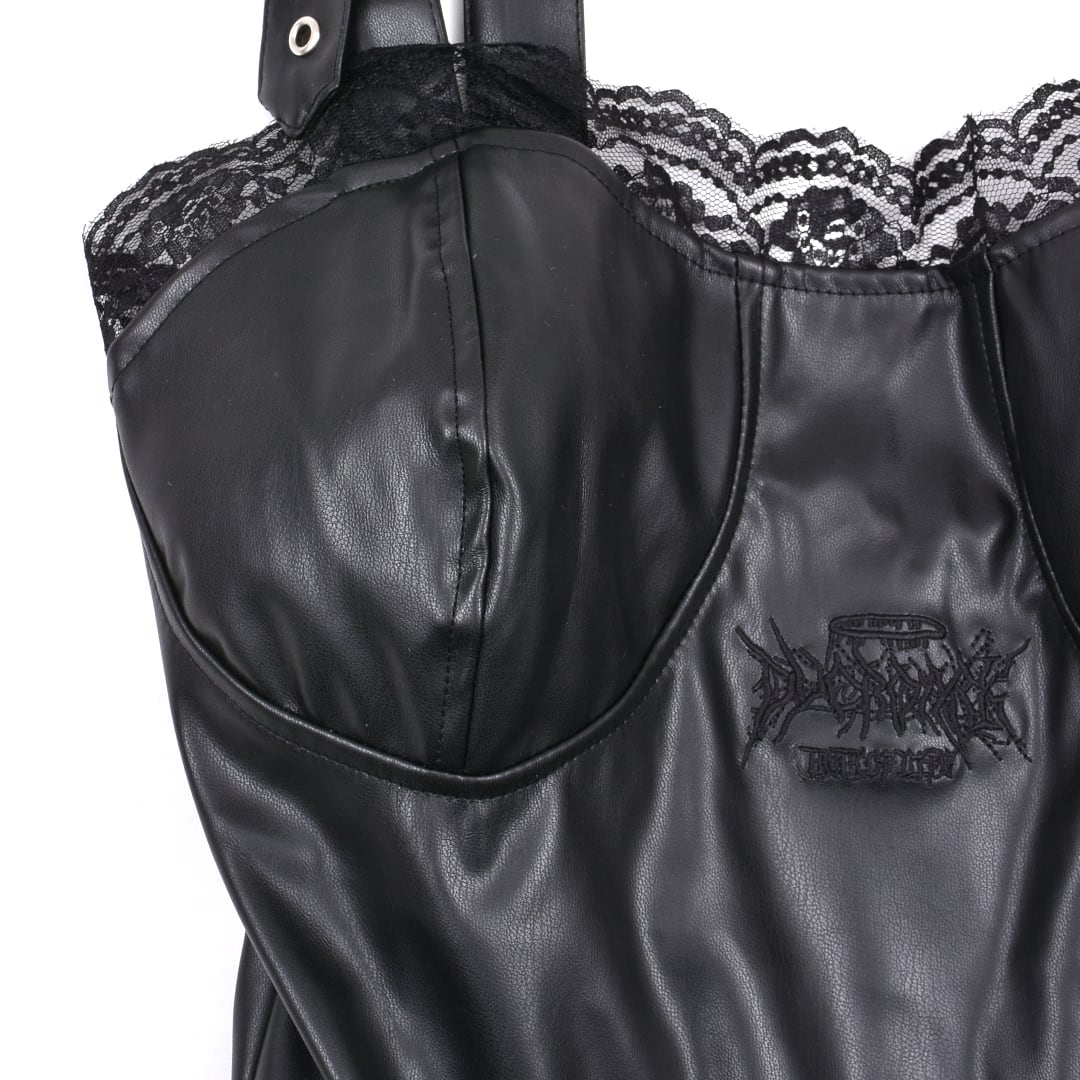 【10/20新着】サブカル刺繍ロゴ★肩ベルトレザーティアードワンピース