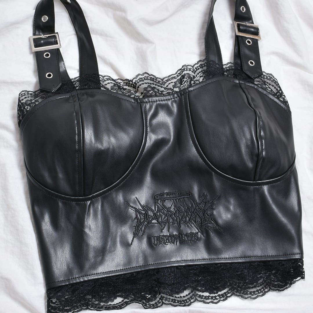 【9/25新着】サブカル刺繍ロゴ★レザービスチェ