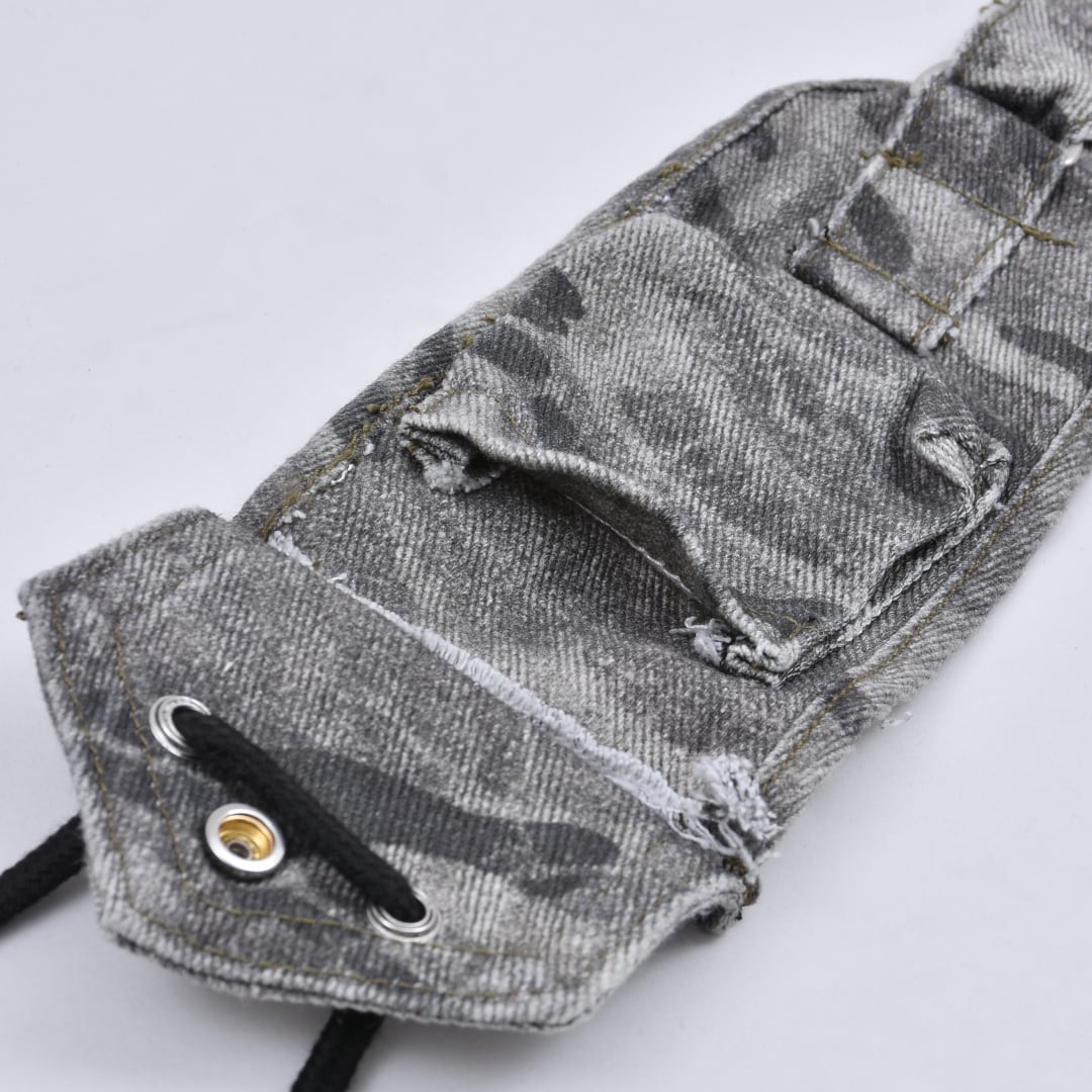 カーゴパンツ、スタッズ付きのフェイクレザーベルト、ビーズスピンドル付きフラップの3点がセット