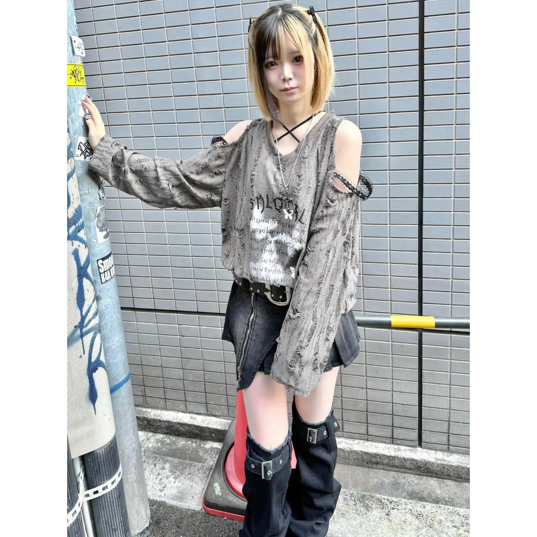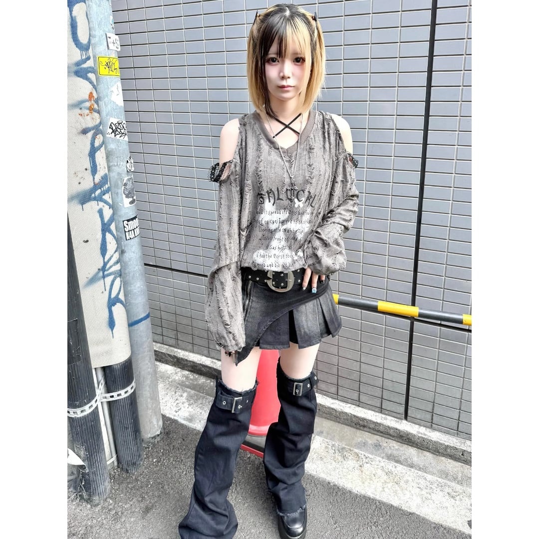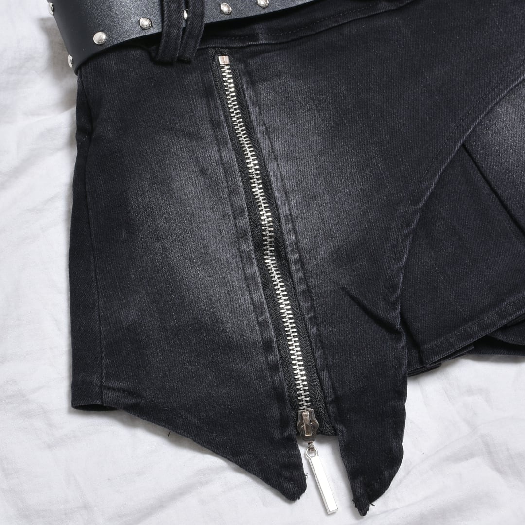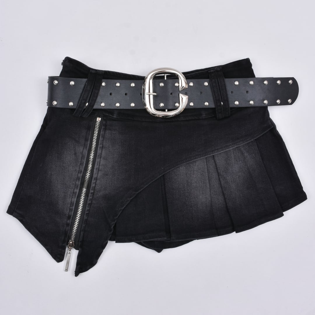 スタッズ付きのベルト+デニムミニスカの2点セット