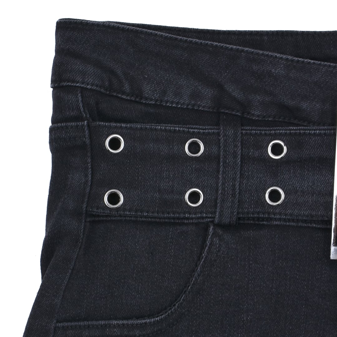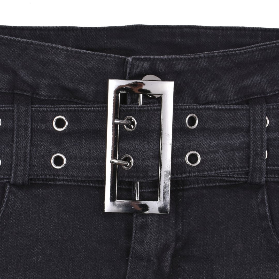ハトメ付きのベルト、大ぶりなバックルがアクセント