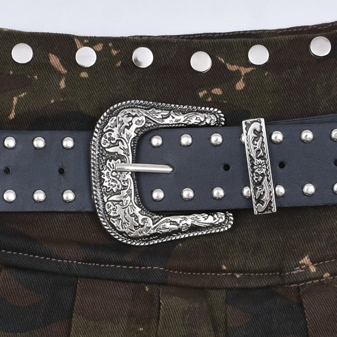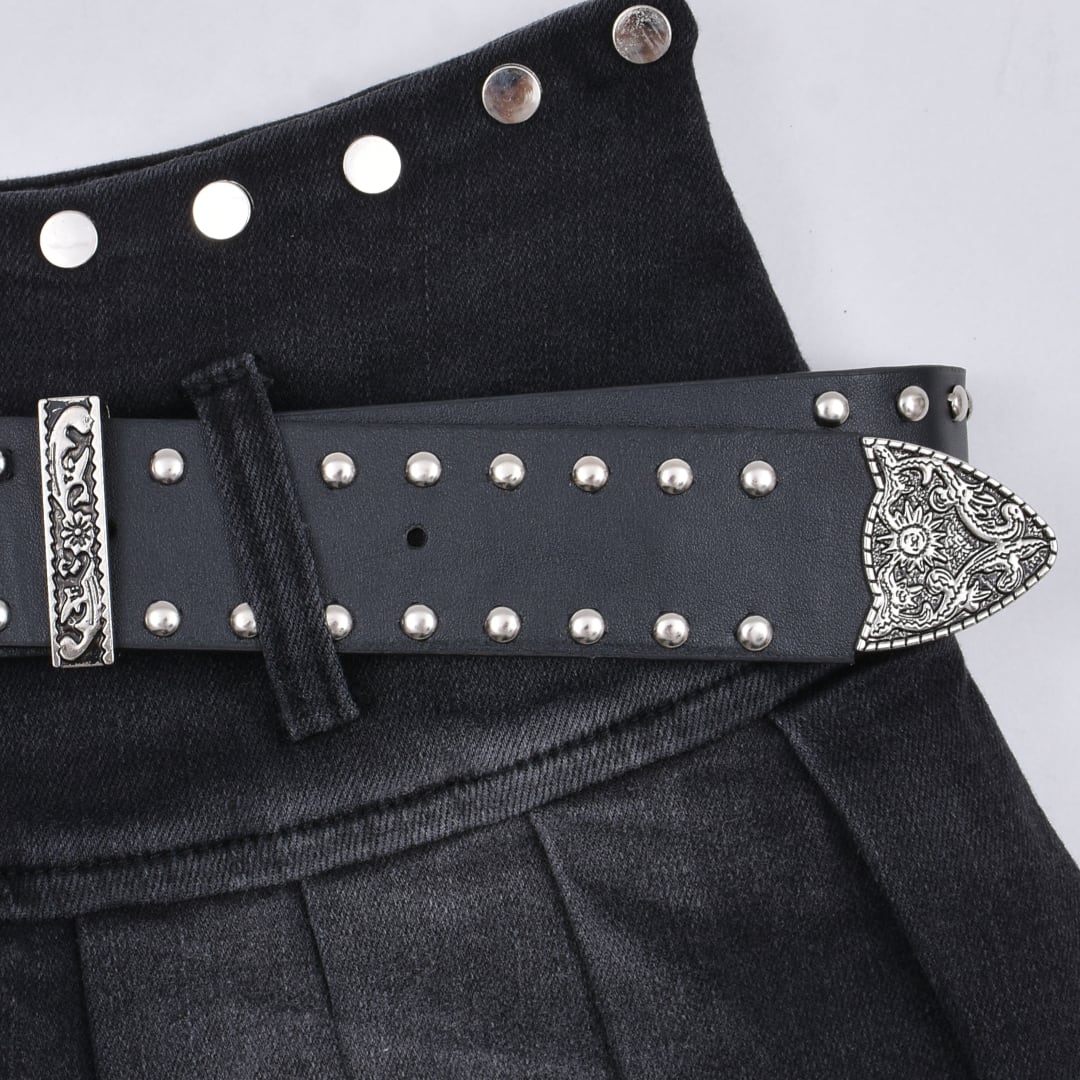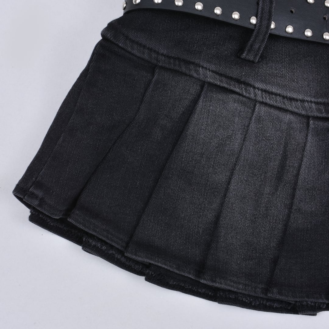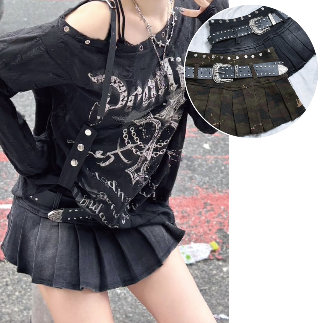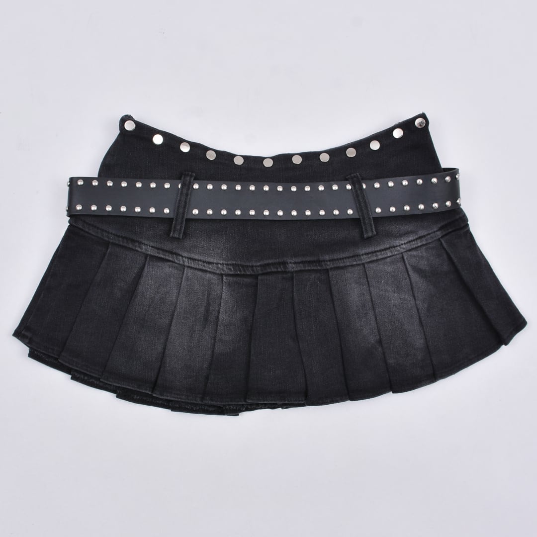 【10/9新着】2点セット★ベルト付き スタッズプリーツスカート