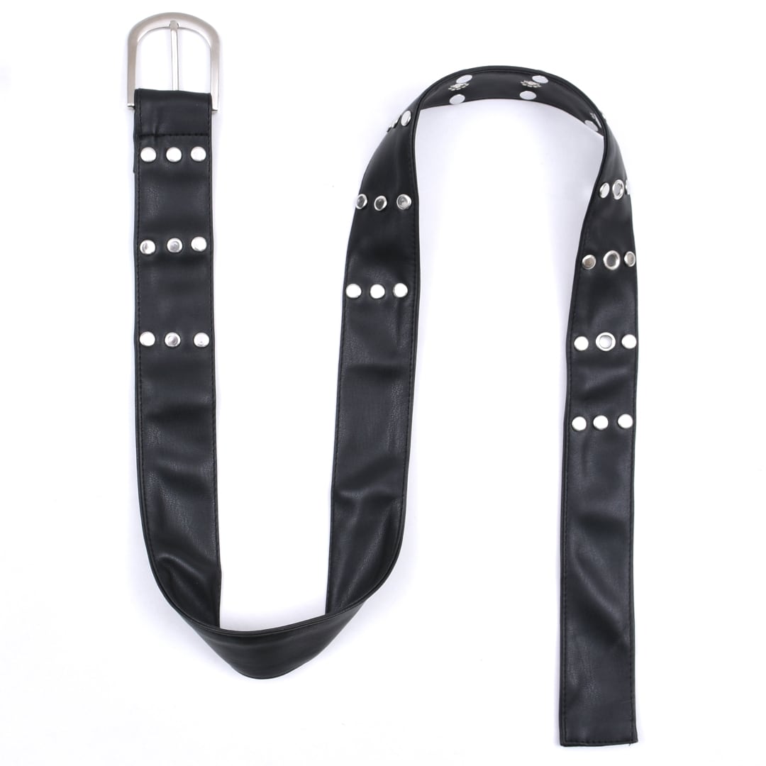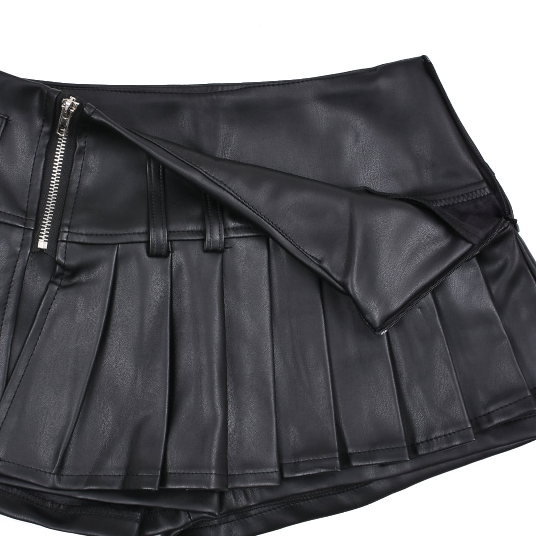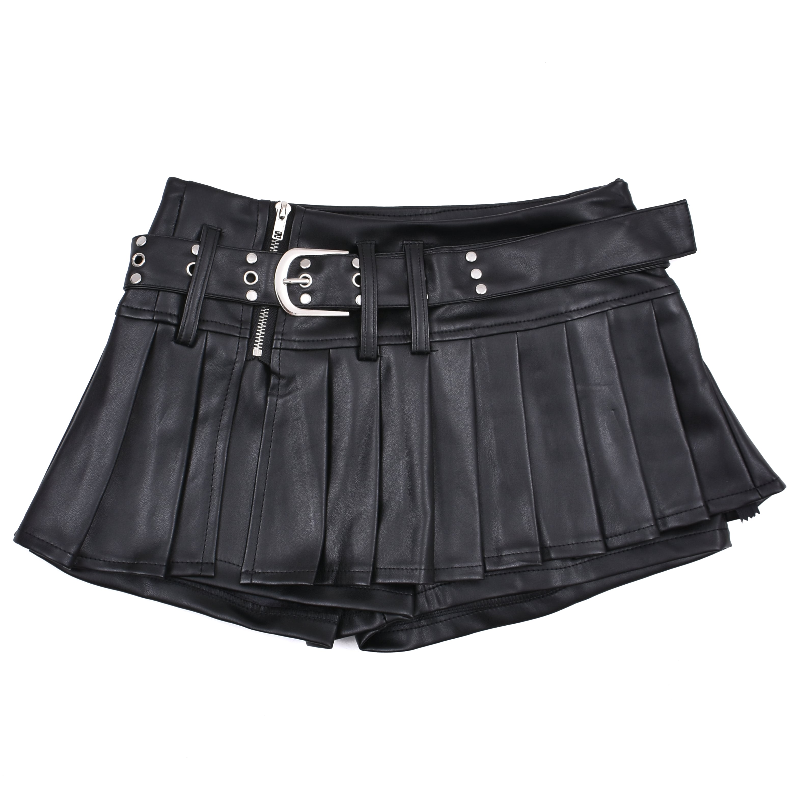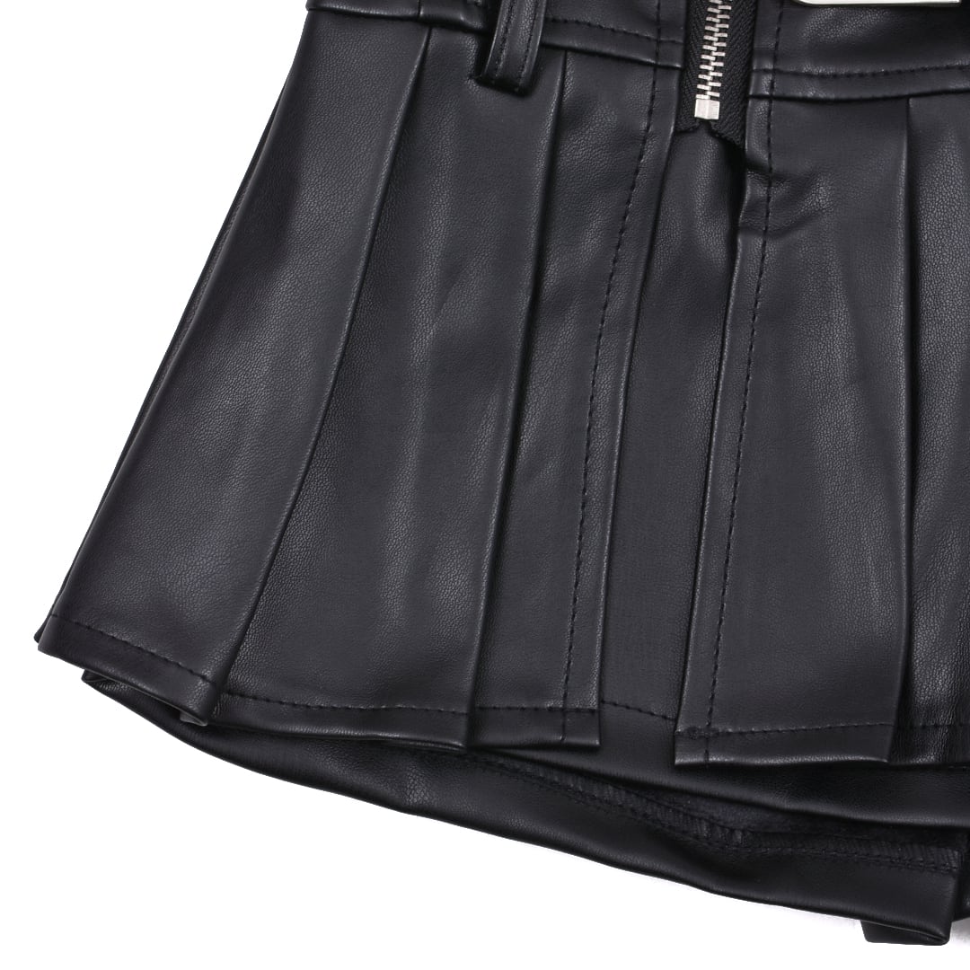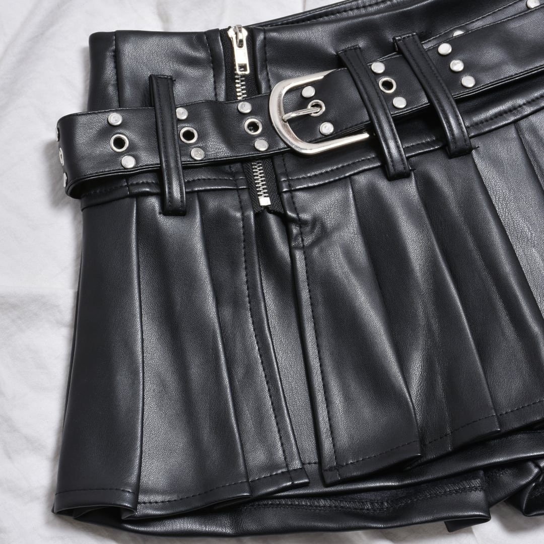 【10/20新着】ベルト丸スタッズプリーツレザースカート