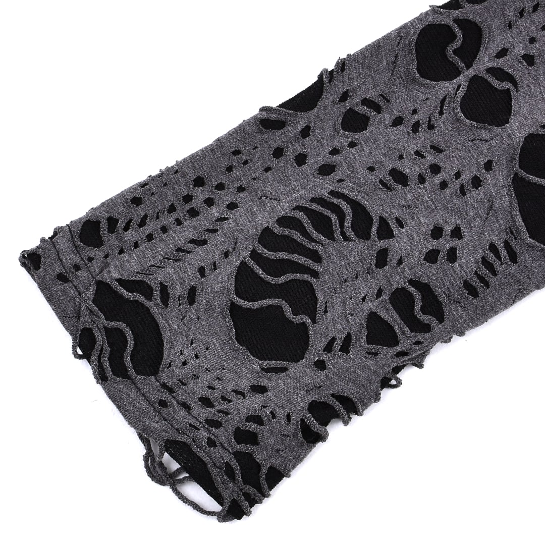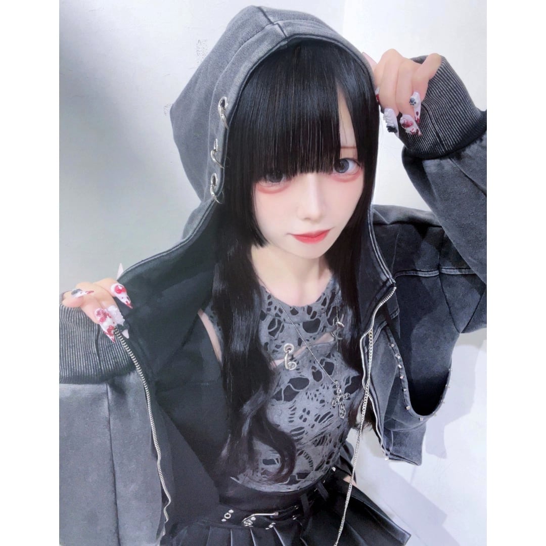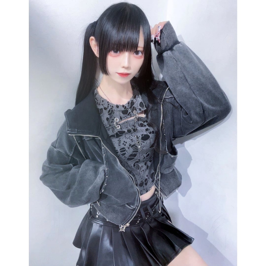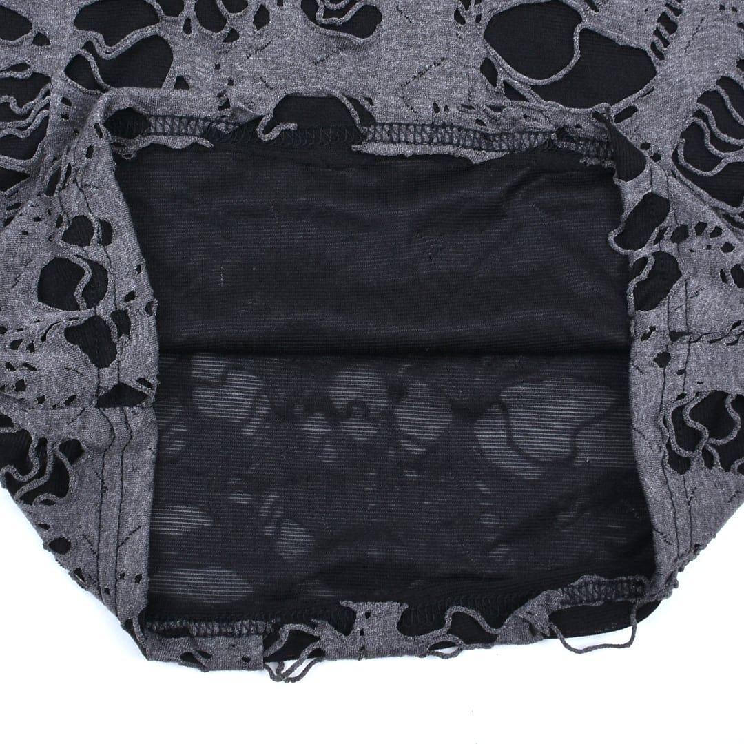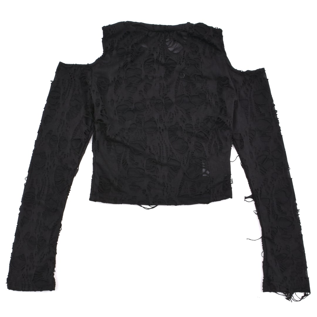 激しいダメージ加工を施した生地、ピアスデザインがアクセントになったロンT