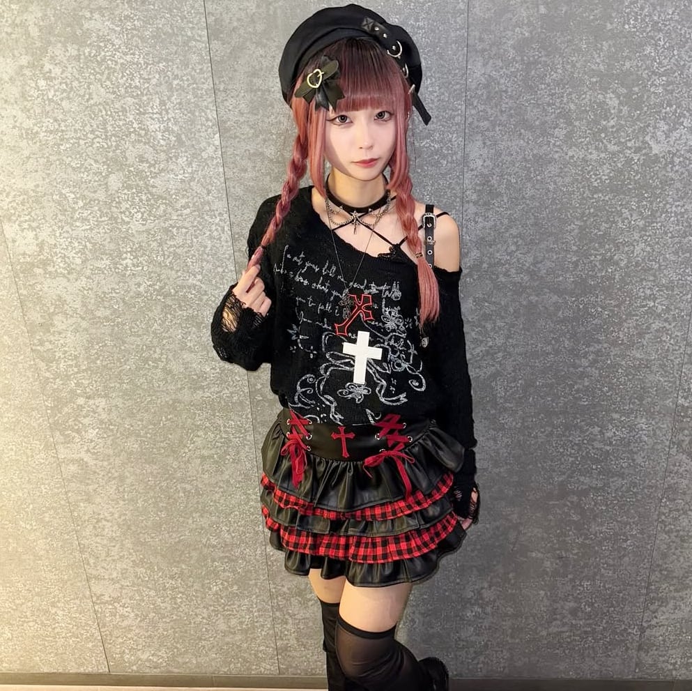 【1/8 完売WHITE再入荷!】肩ベルトREDクロスダメージトップス