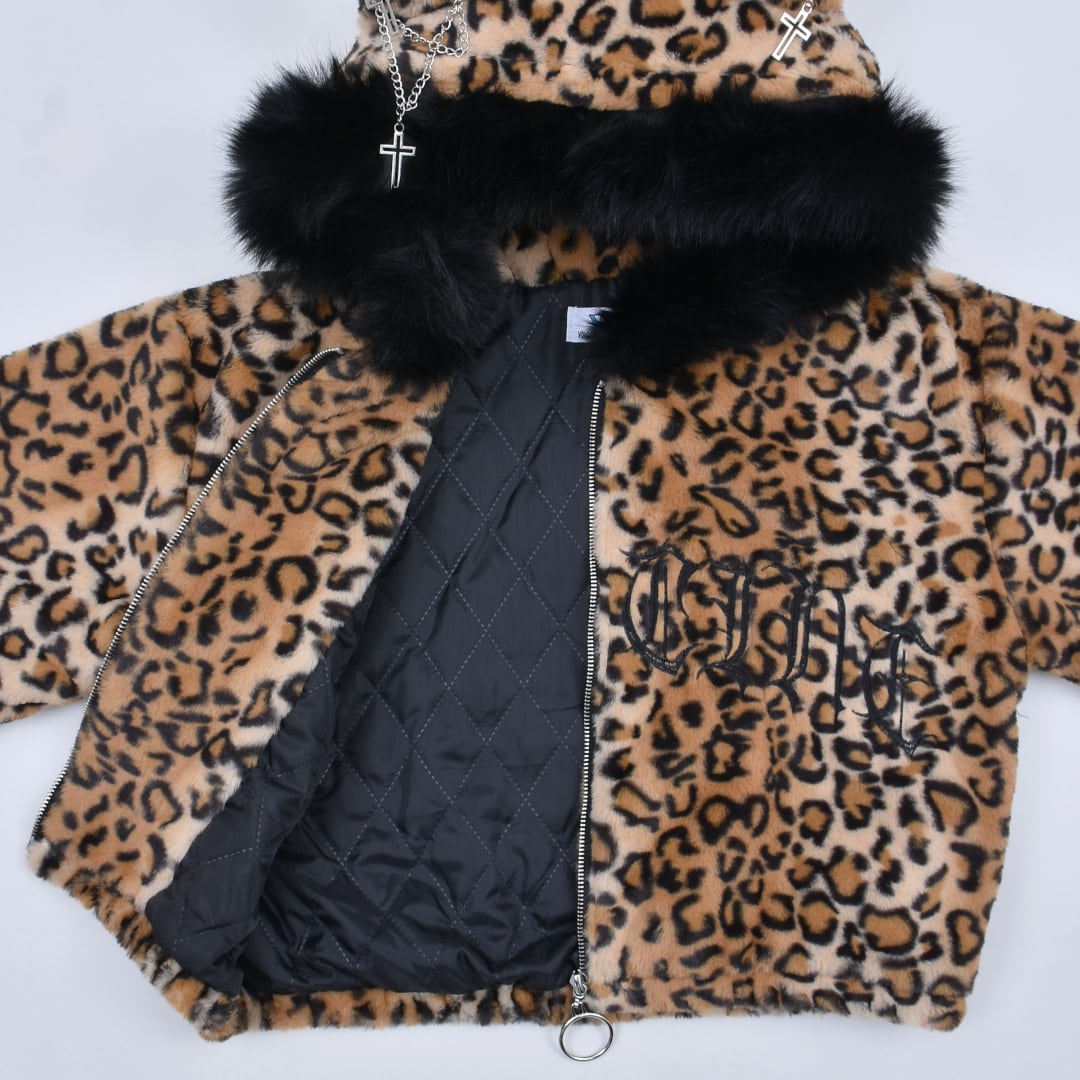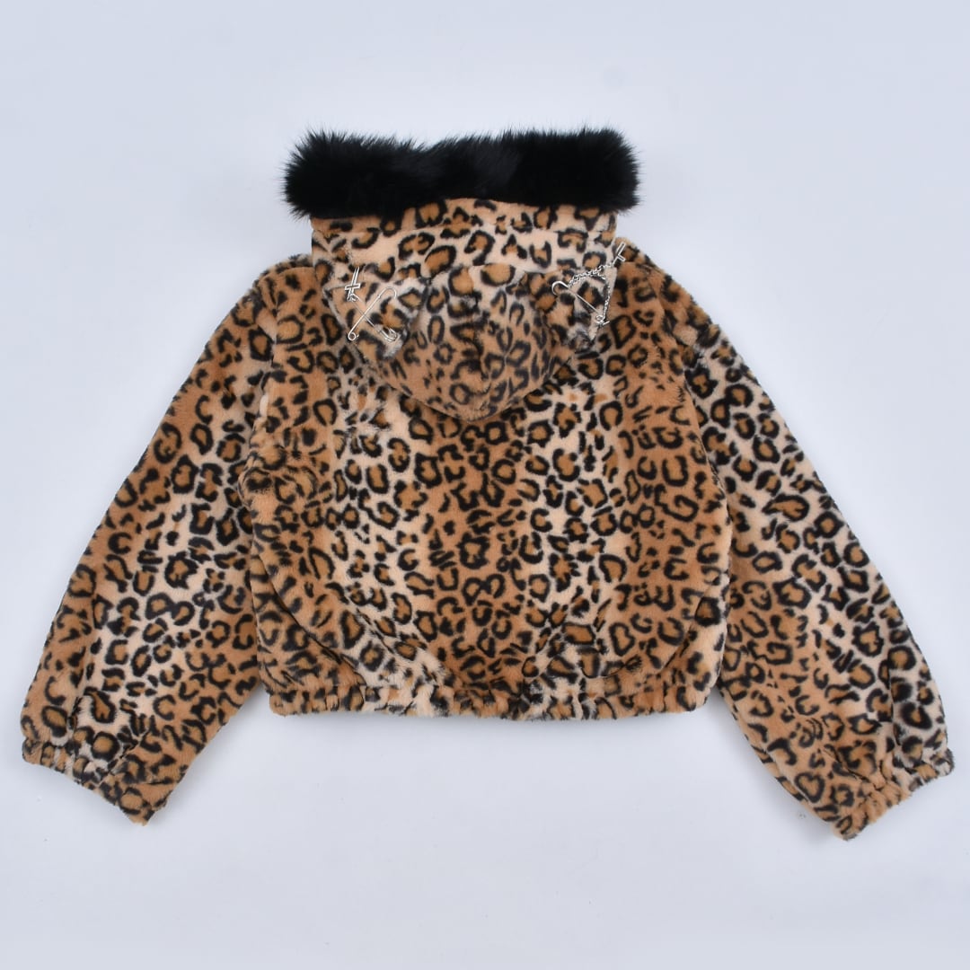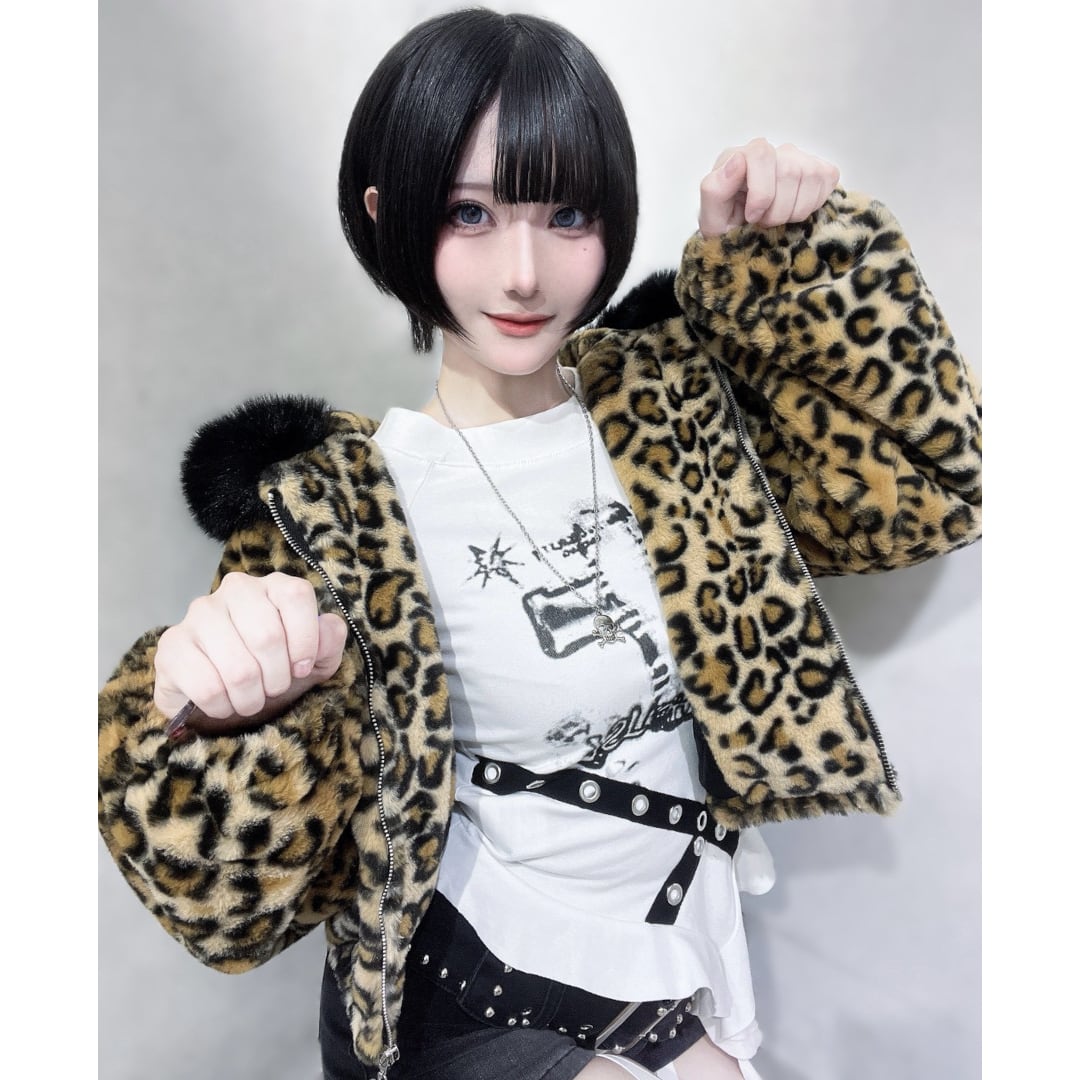 【10/17新着】ヒョウ柄ネコ耳ロゴファー★ショート丈ブルゾン