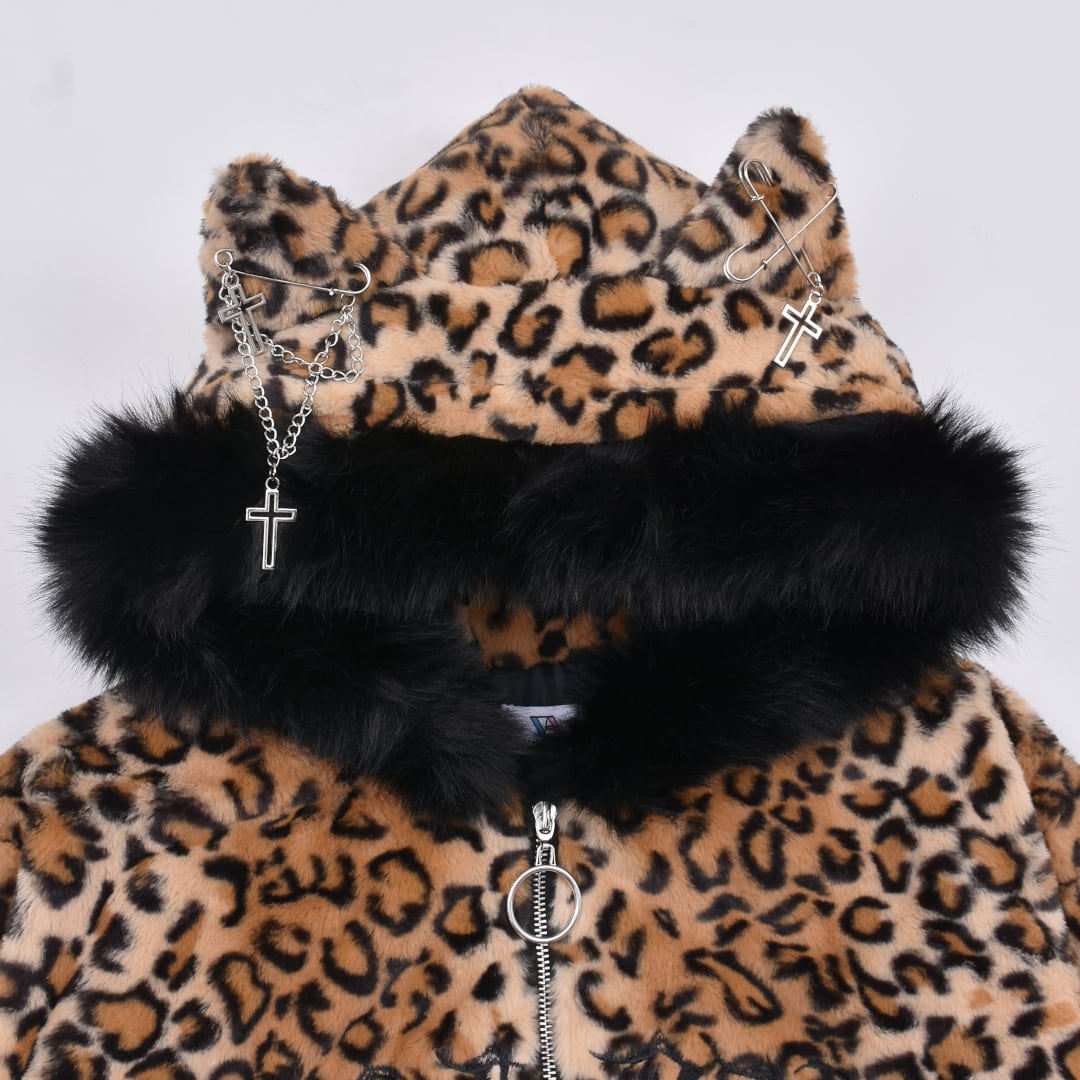 ショートヒョウ柄ネコ耳ロゴファーBL