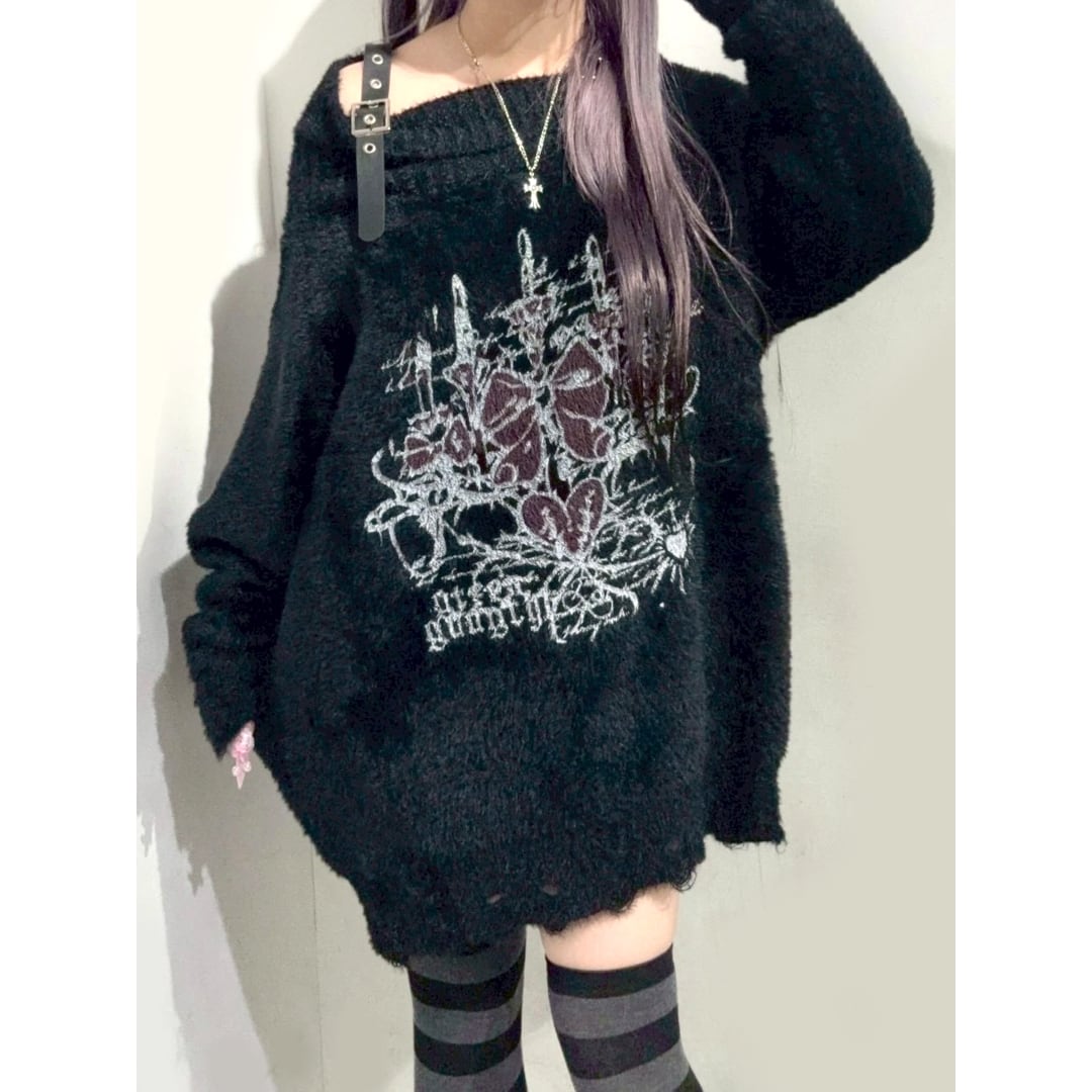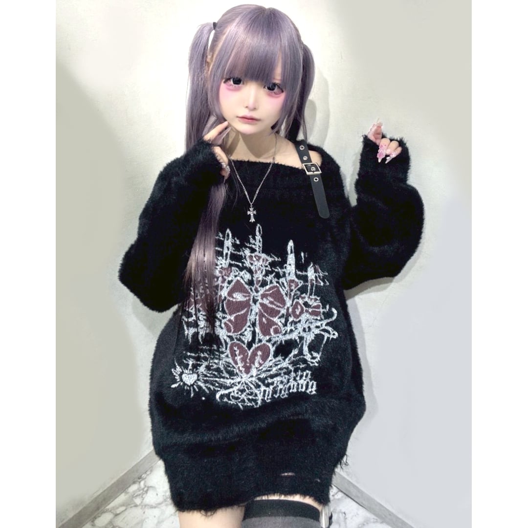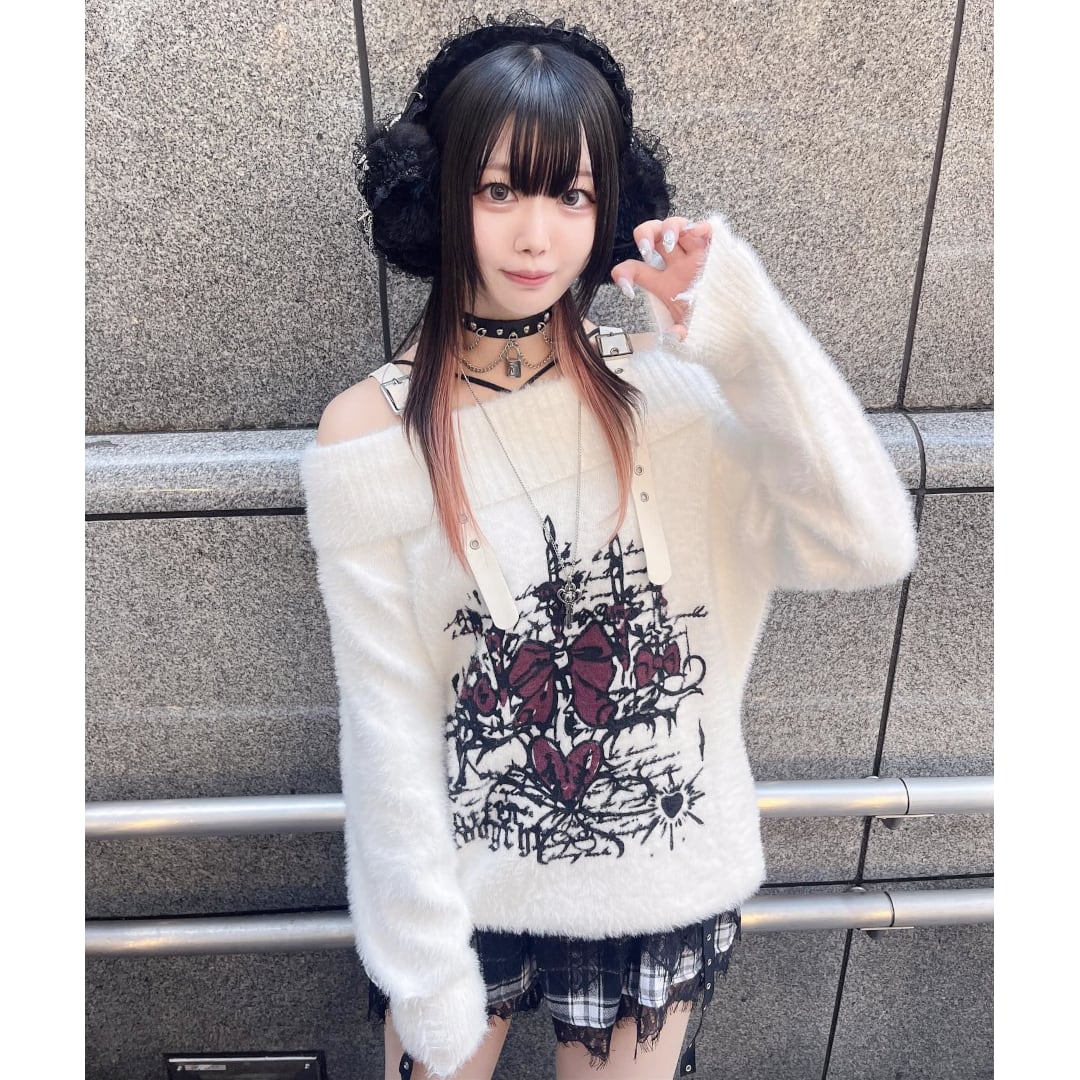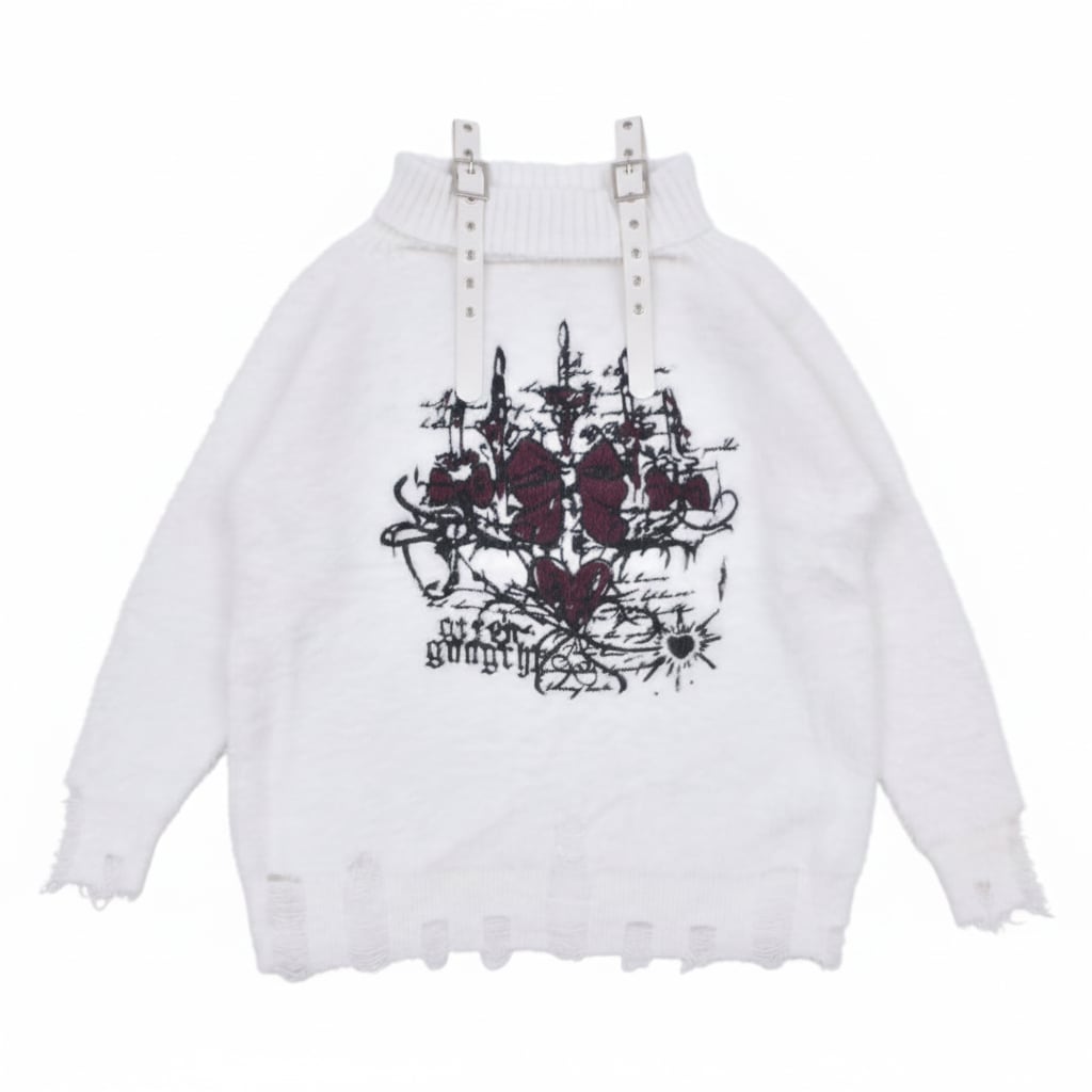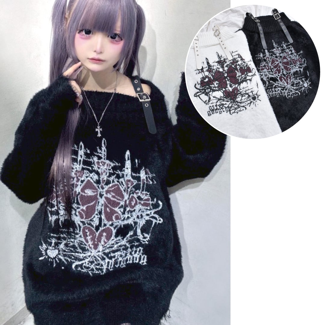 【11/14 完売→再入荷!】新作★肩ベルトリボンダメージニット