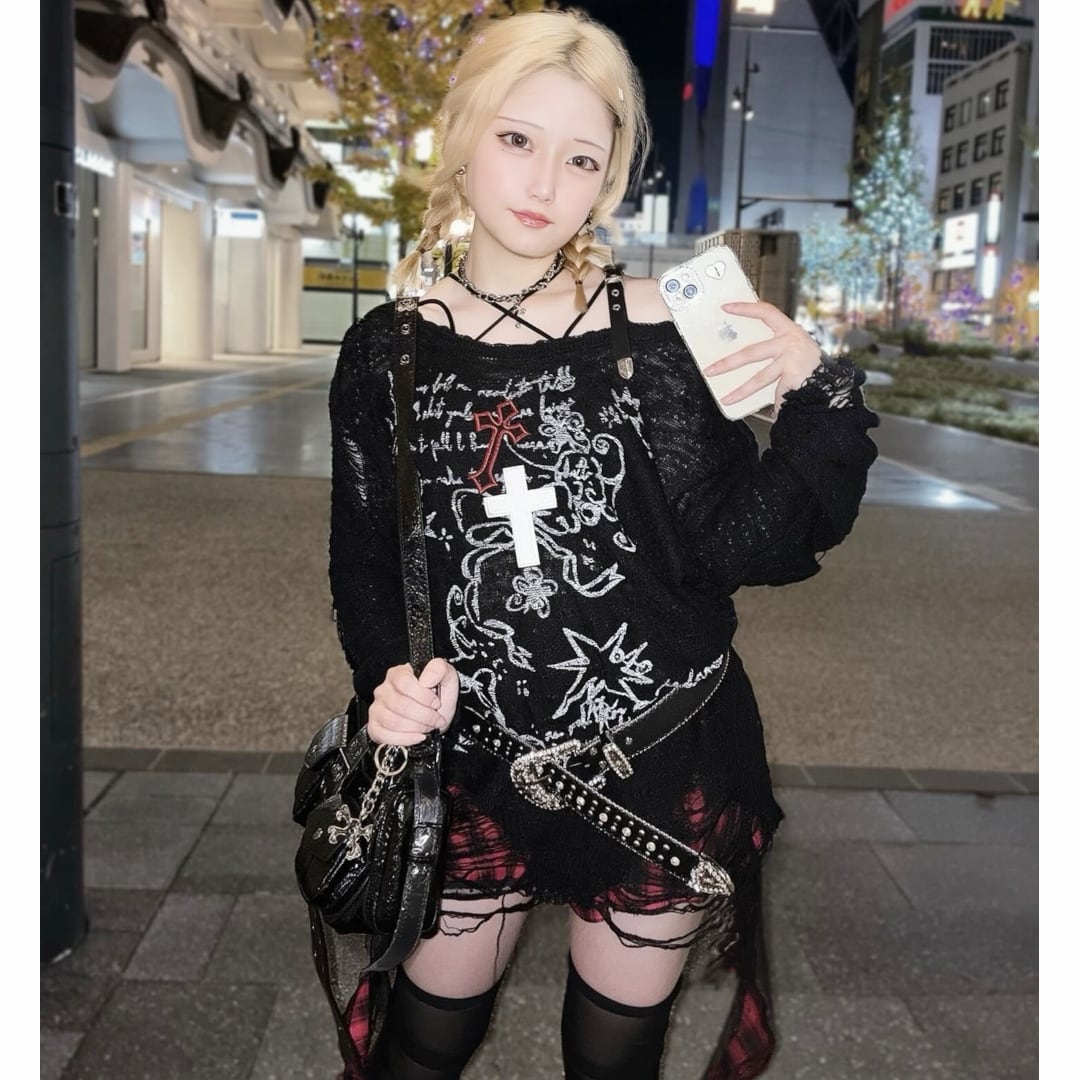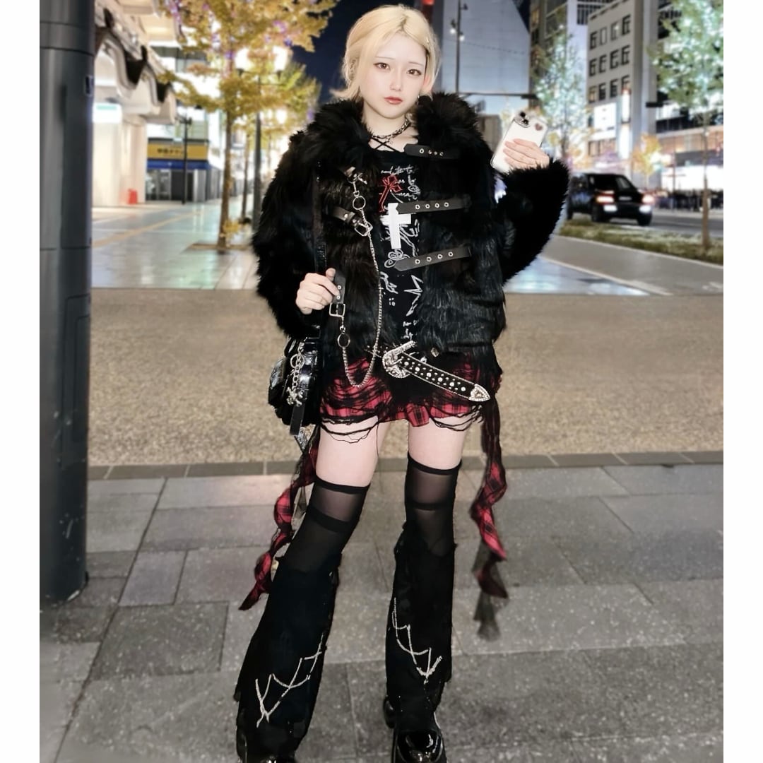 チェック柄にレースを重ねた個性的なアシンメトリーデザイン