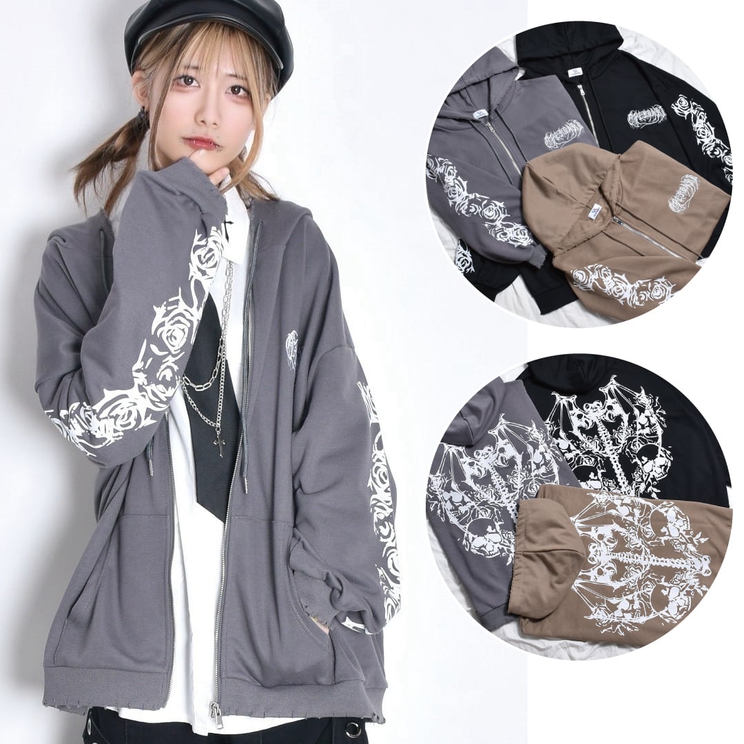 ROSE SKULL ZIPパーカー