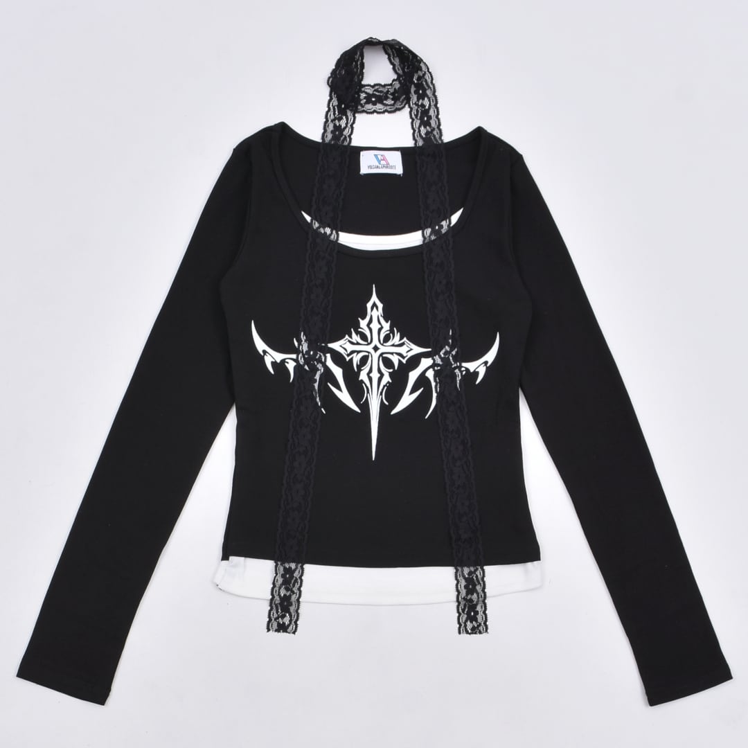 【11/25新着】2点セット★レースチョーカー付きロンT(クロスモチーフ)