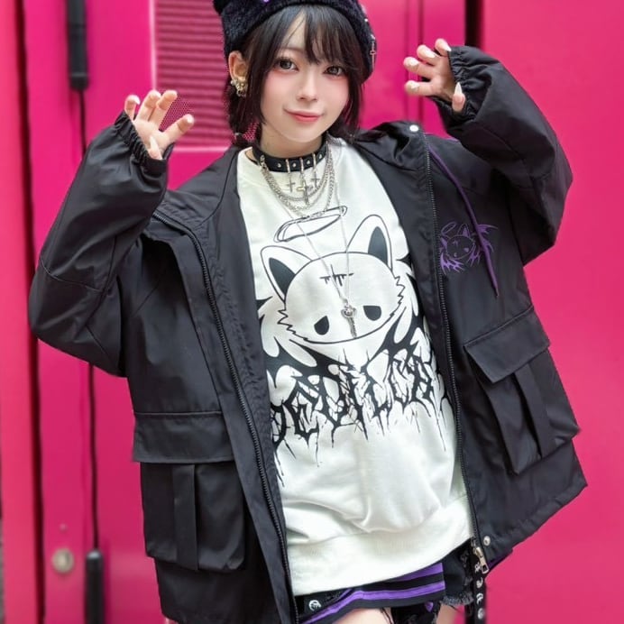 【11/6新着】デビルキャット刺繍★フードブルゾン