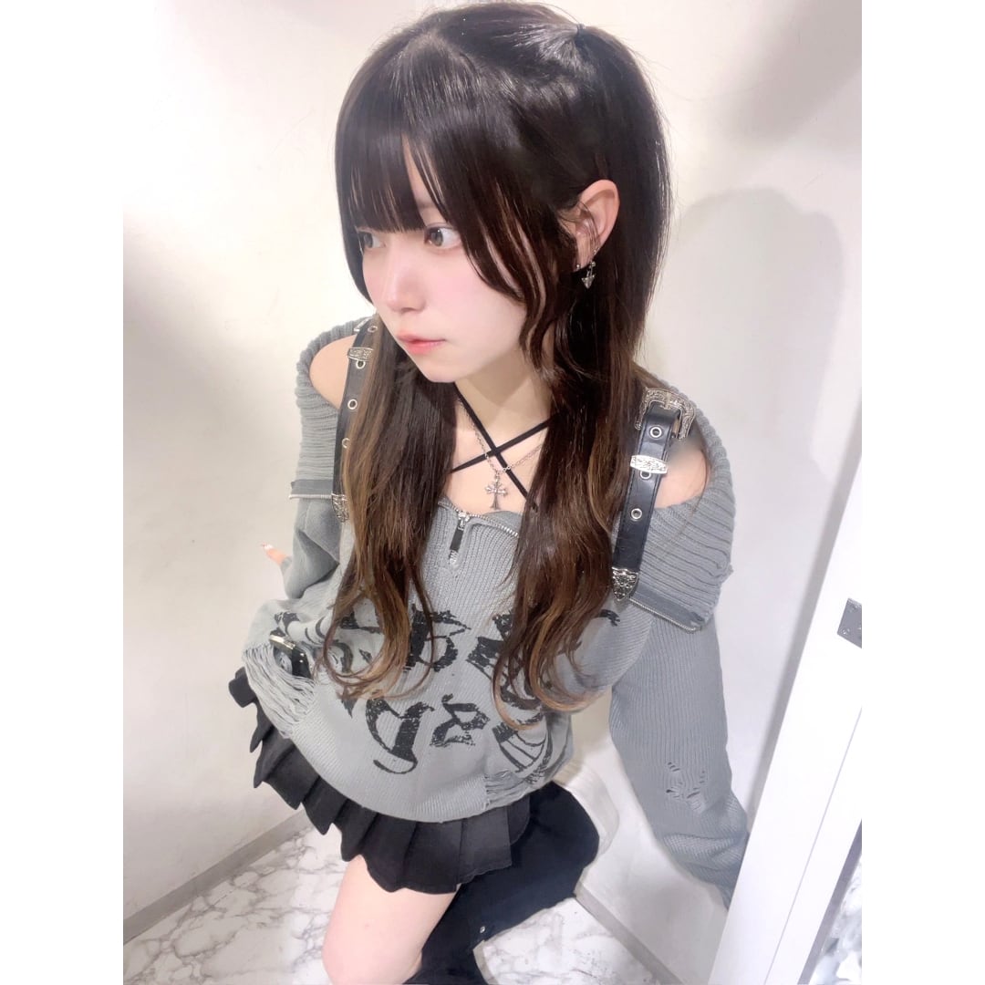 【11/10新着】ロゴ肩ベルトオフショルニット