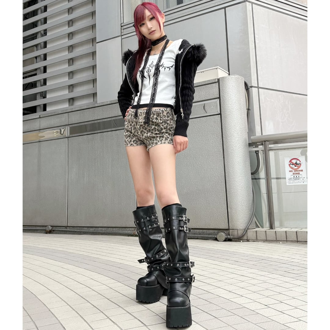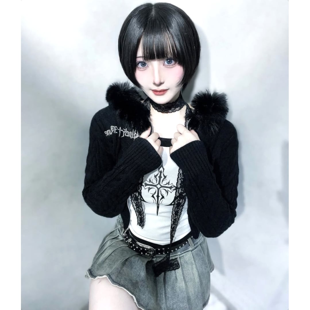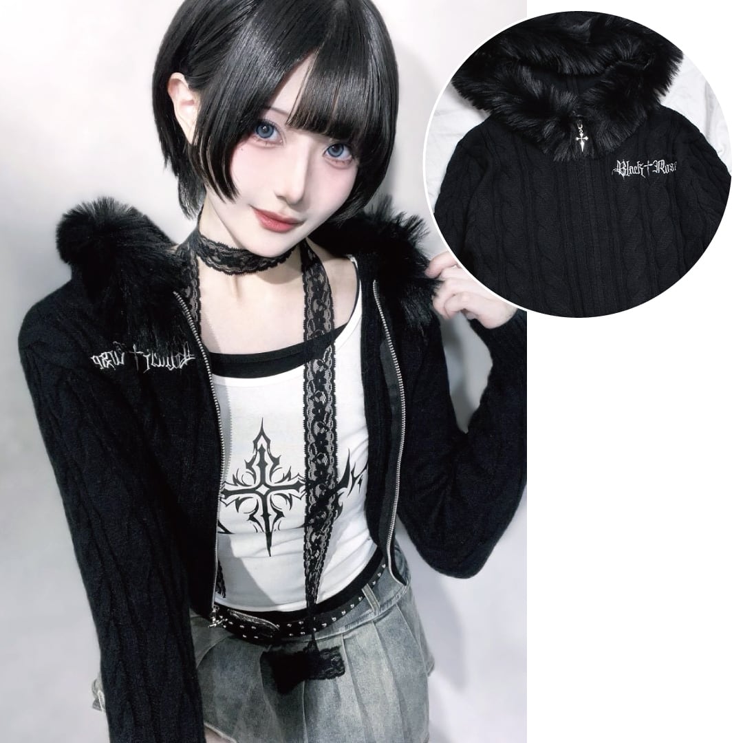 【11/6新着】ファーケーブルニット ショート丈ZIPパーカー