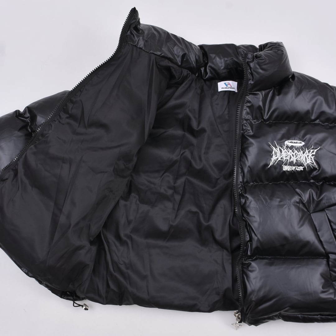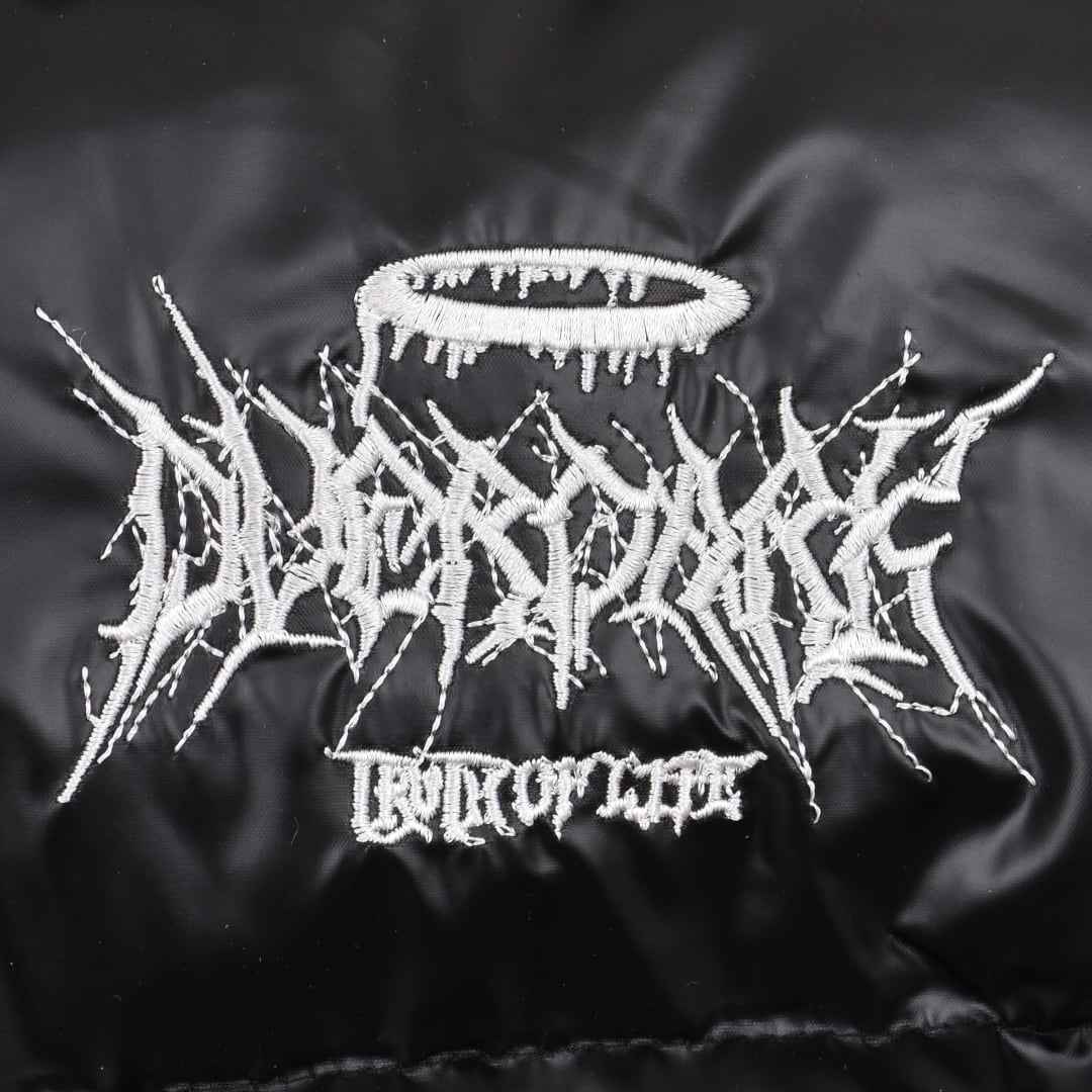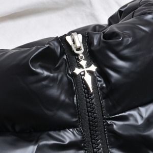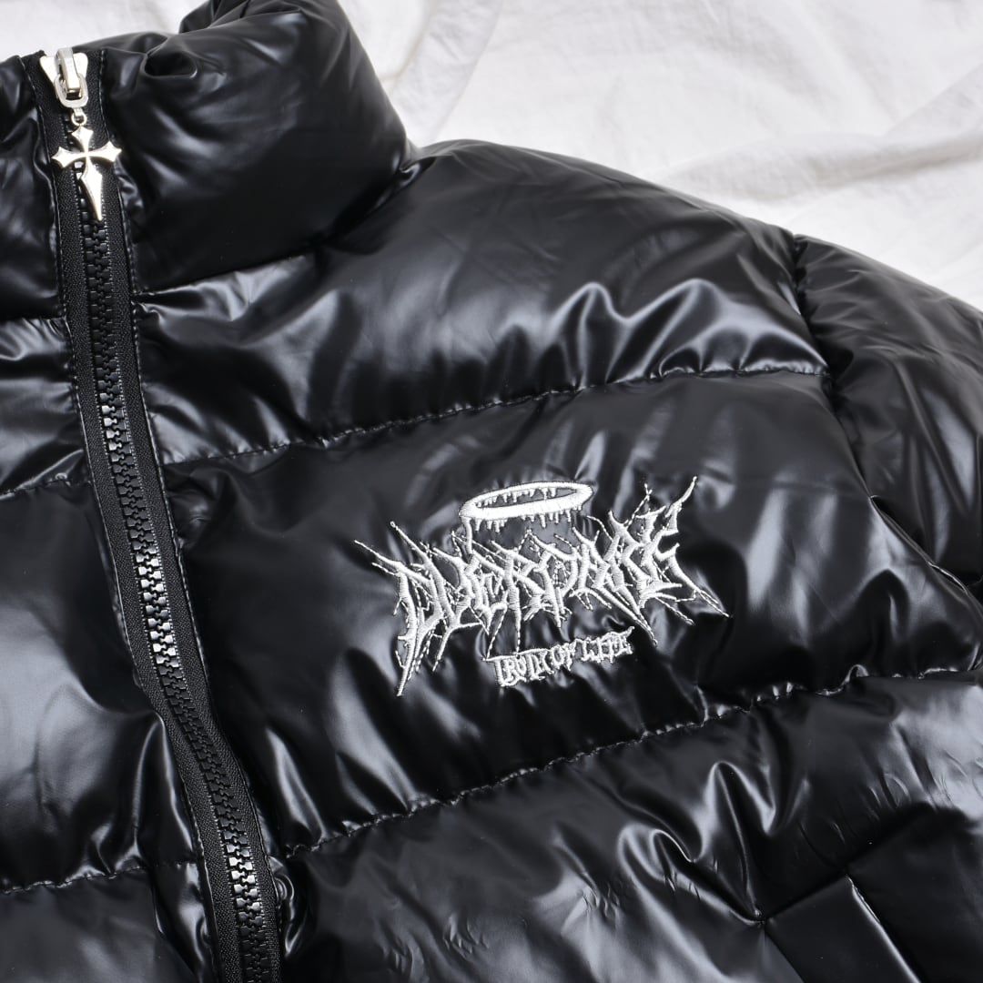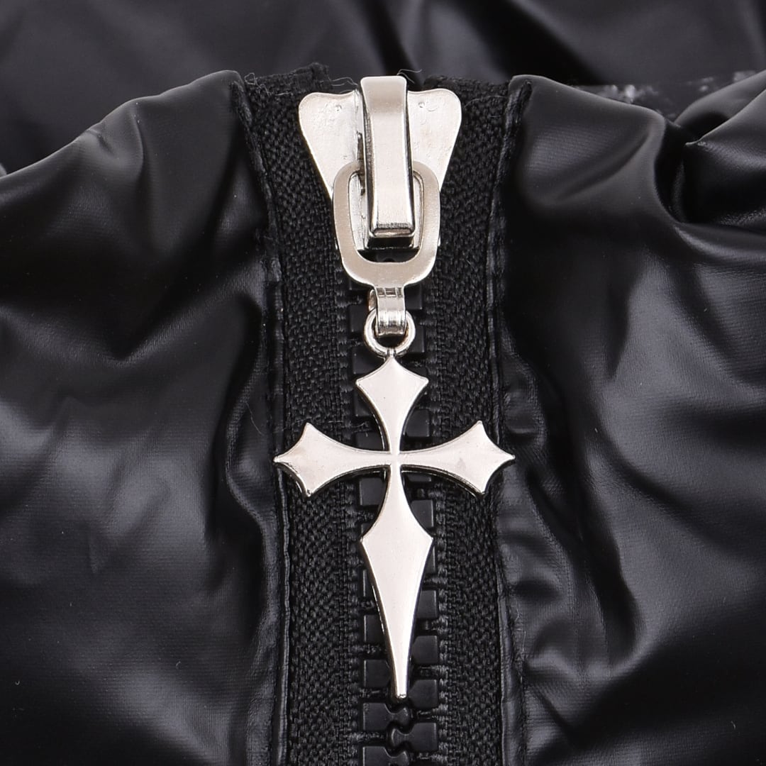胸元の刺繍、クロスモチーフのZIPがアクセントになった中綿ジャケット