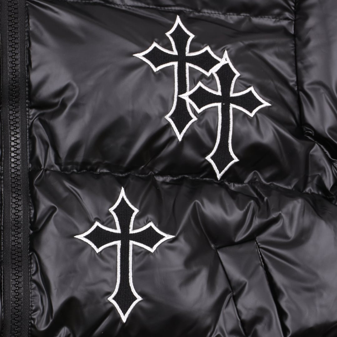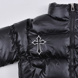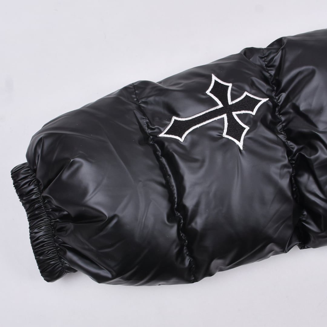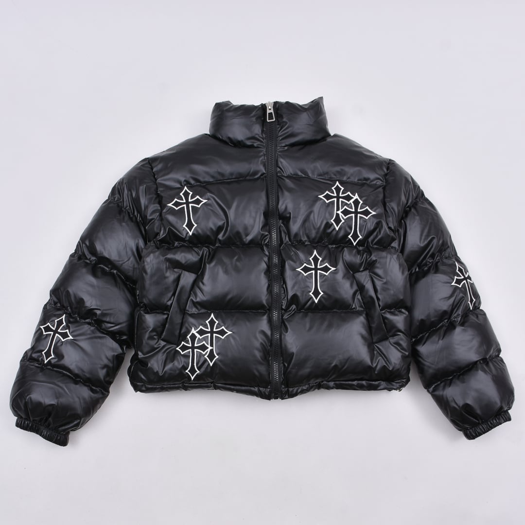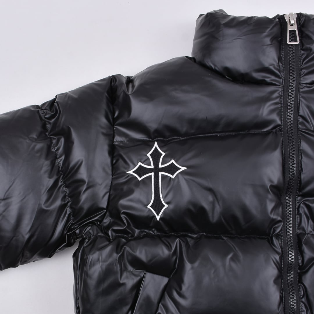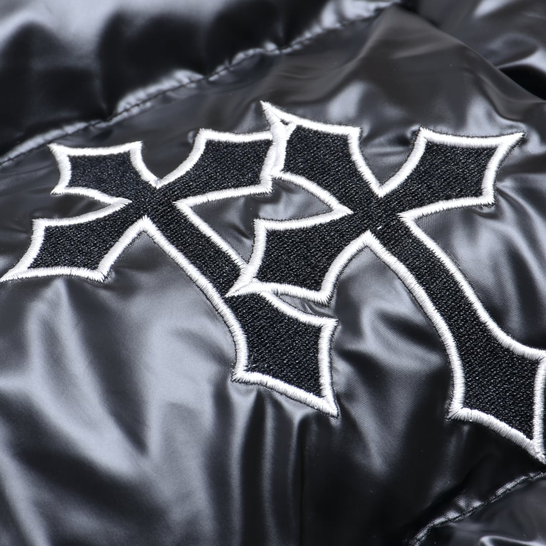 随所に施したクロスモチーフの刺繍がアクセントになった中綿ジャケット