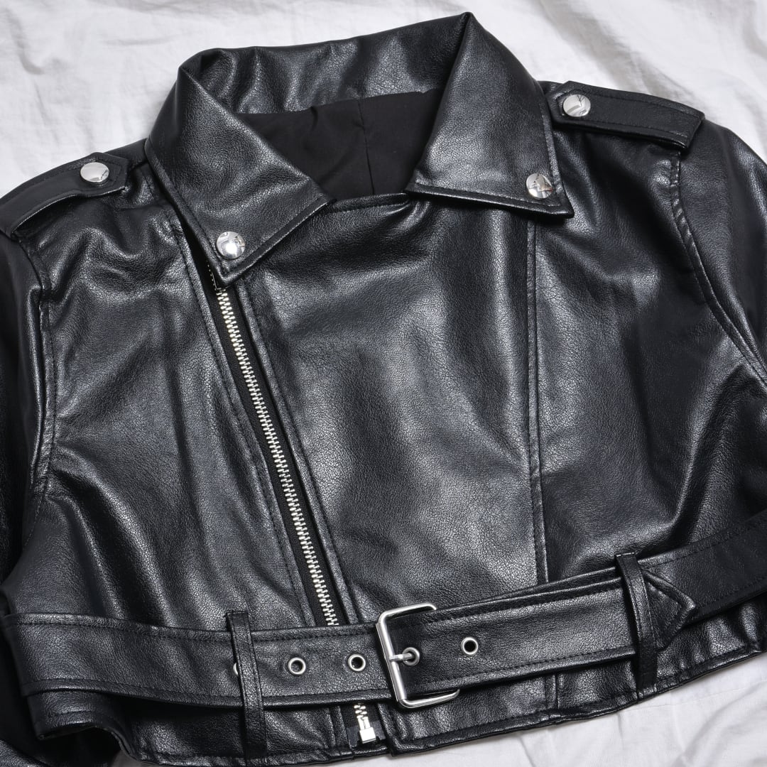 ハードな印象になりがちなダブル仕様のライダースを、コンパクトな女の子らしいサイズ感で仕上げた一品。