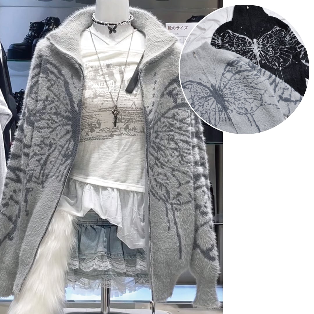 バタフライ(蝶)モチーフを施したニットブルゾン