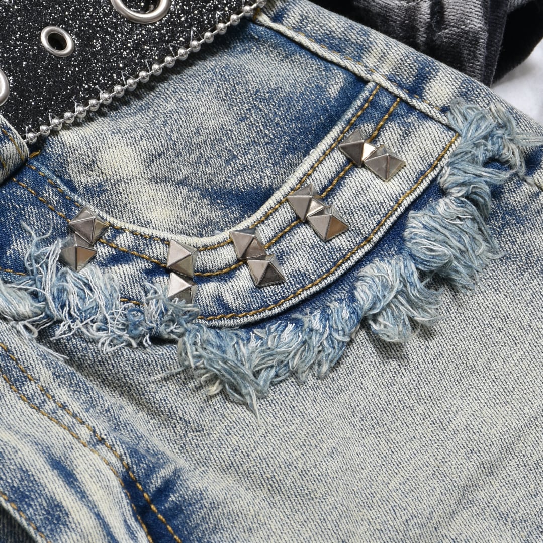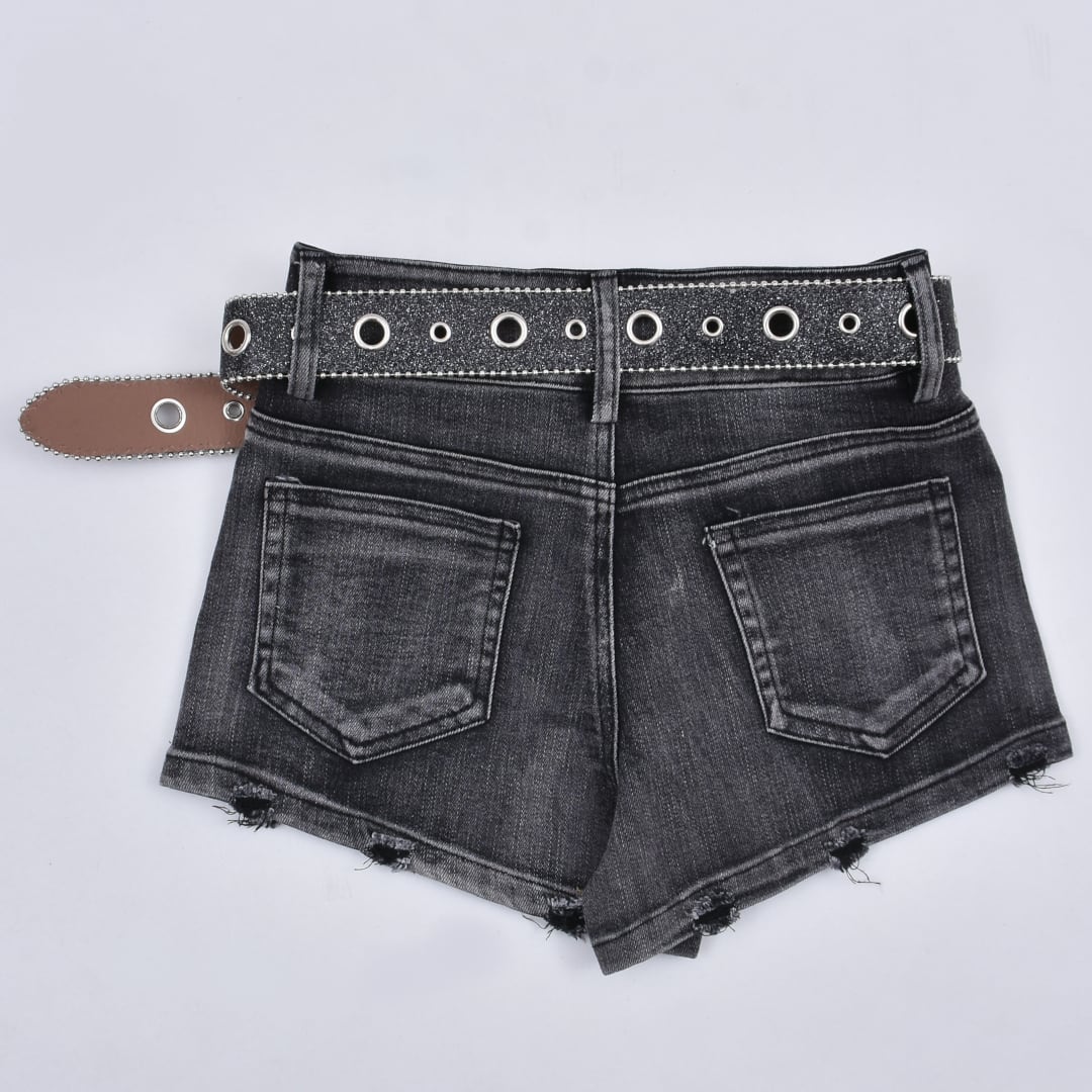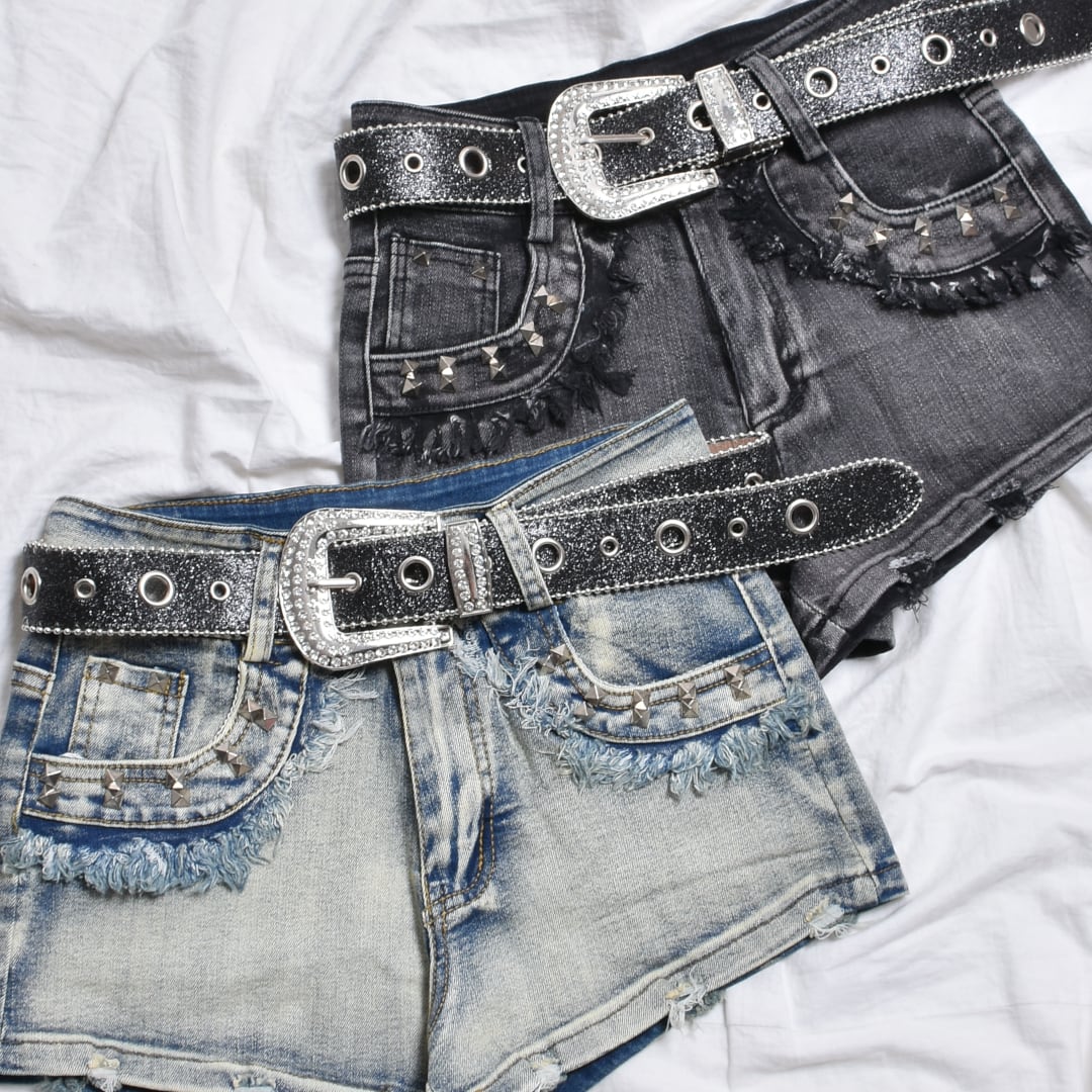 【12/2新着】2点セット★ベルト付きスタッズデニムショートパンツ