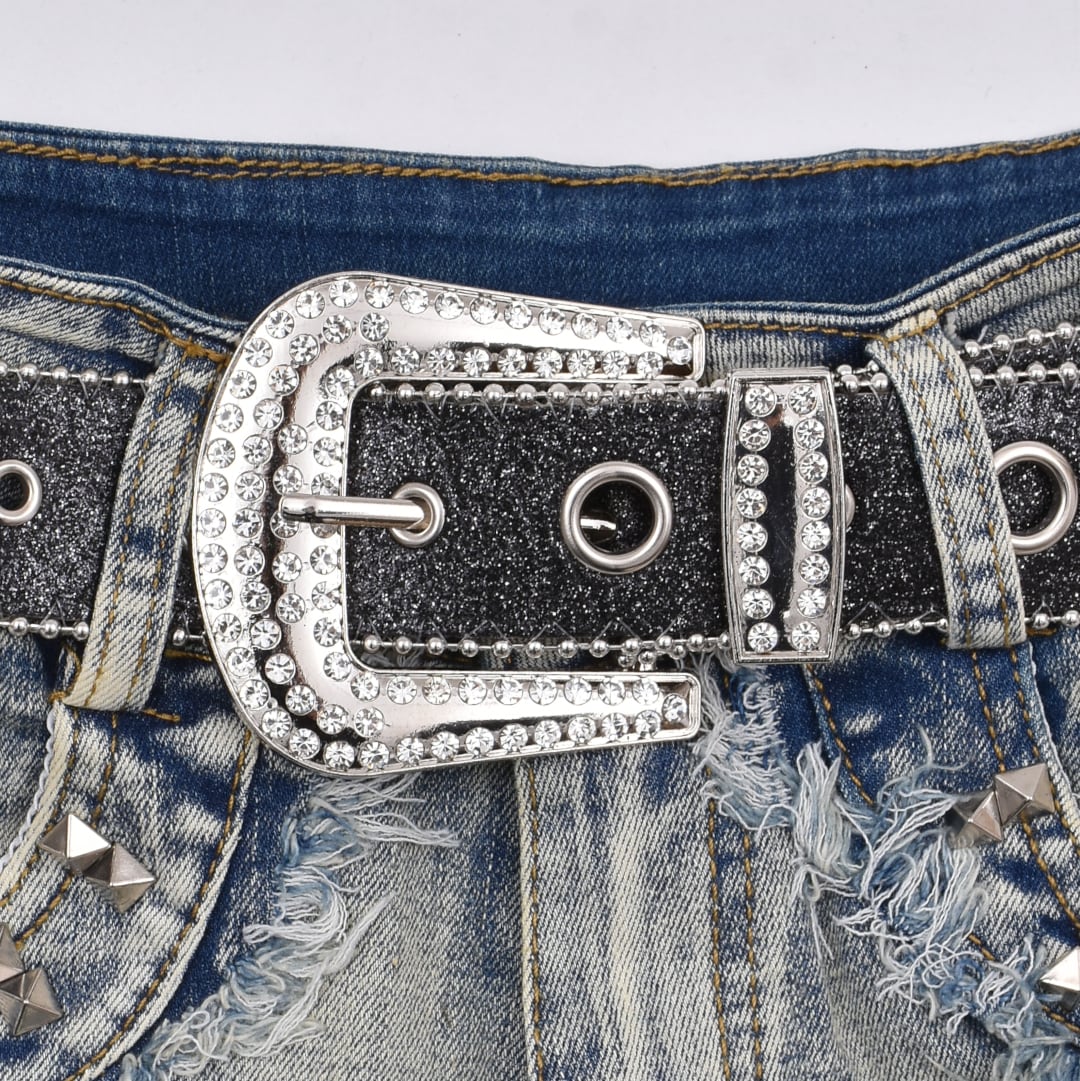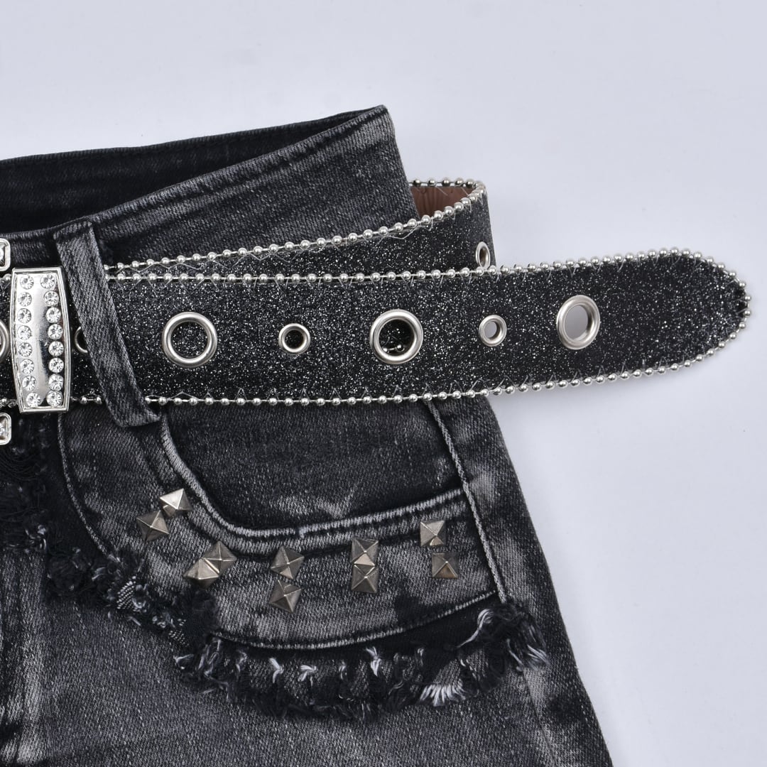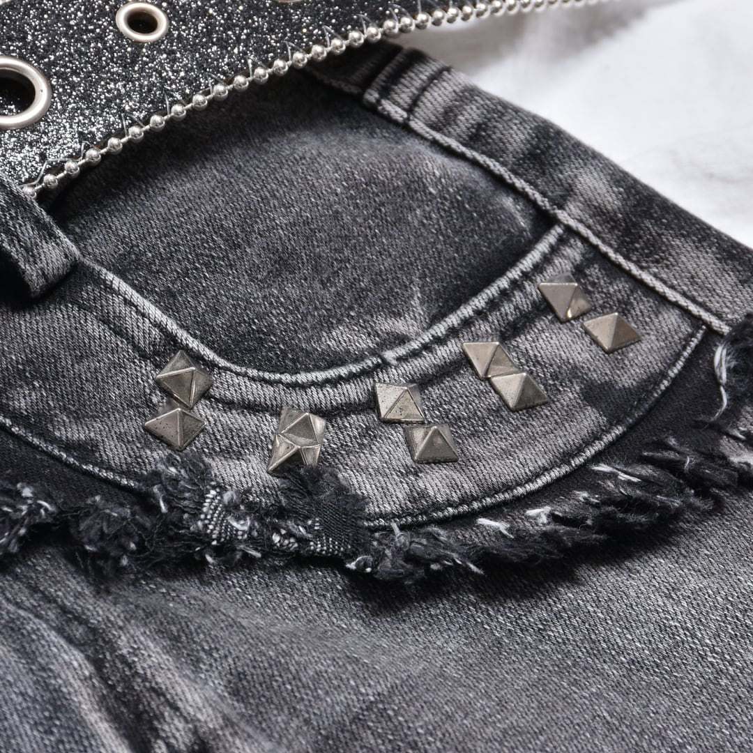 【12/2新着】2点セット★ベルト付きスタッズデニムショートパンツ